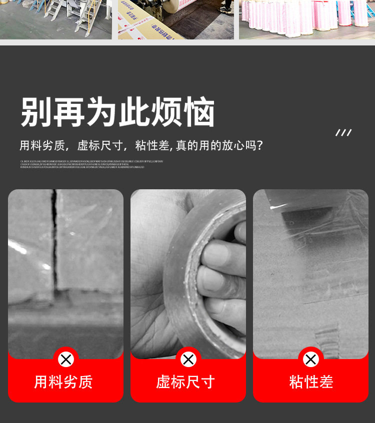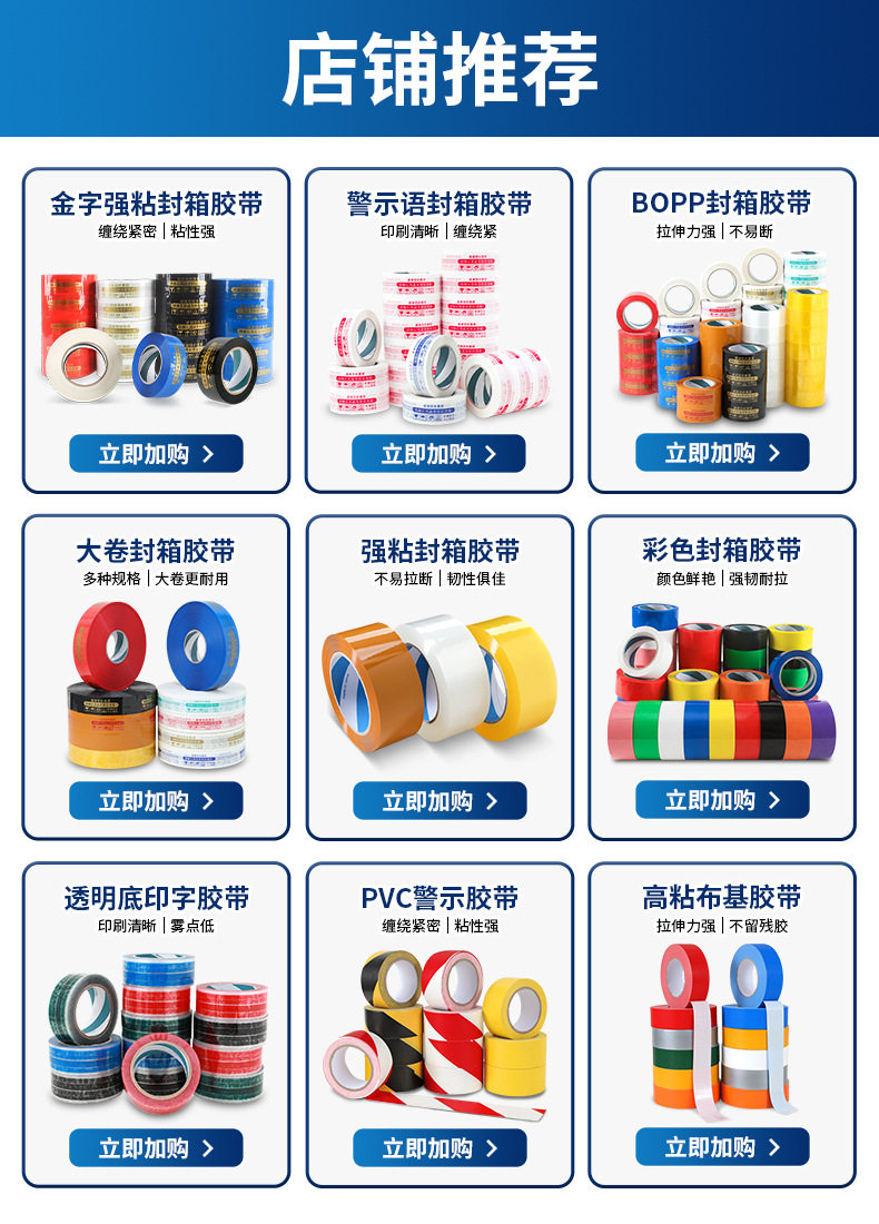 | Specifications | 4.5cm width * 2.2 thickness * 150(72 rolls/box),4.5cm width * 1.8 thickness * 110(72 rolls/box),4.5cm width * 2.5 thickness * 190(72 rolls/box),4.8cm width * 1.8 thickness * 110(72 rolls/box),4.8cm width * 2.5 thickness * 190(72 rolls/box),4.8cm width * 2.2 thickness * 150(72 rolls/box),4.5cm width * 3.0 thick * 260(48 rolls/box),4.8cm width * 3.0 thickness * 260(48 rolls/box) |