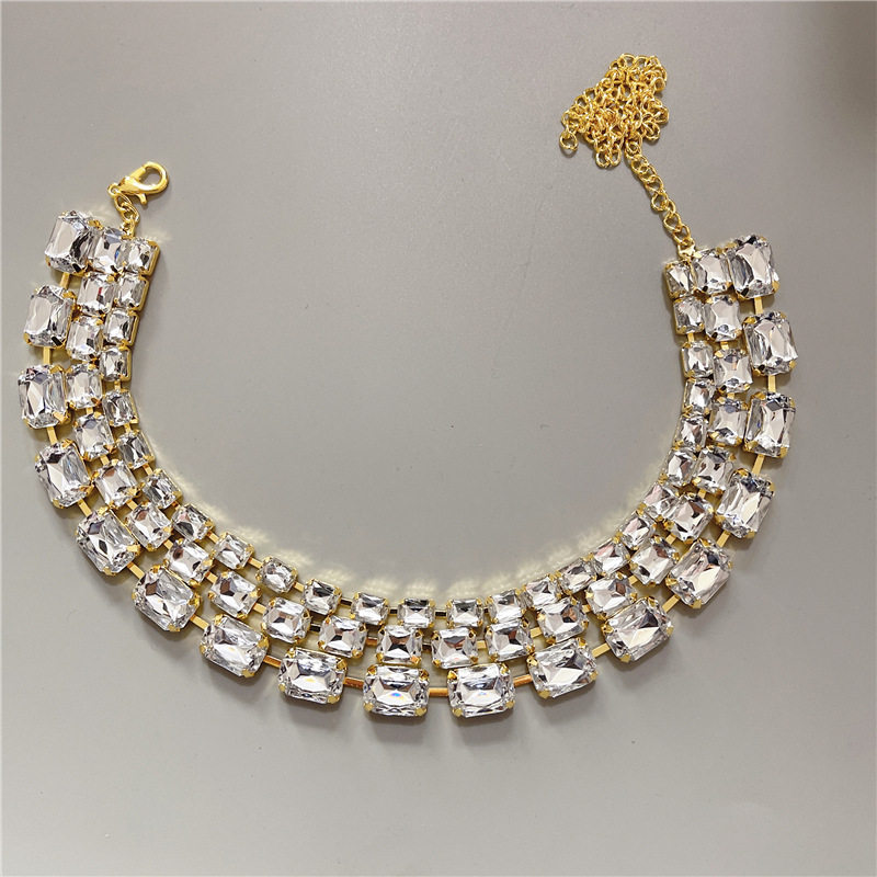 European and American New Style Exaggerated Crystal Multi-Layer Tassel Necklace Shiny Rhinestone Choker Bridal Wedding Jewelry