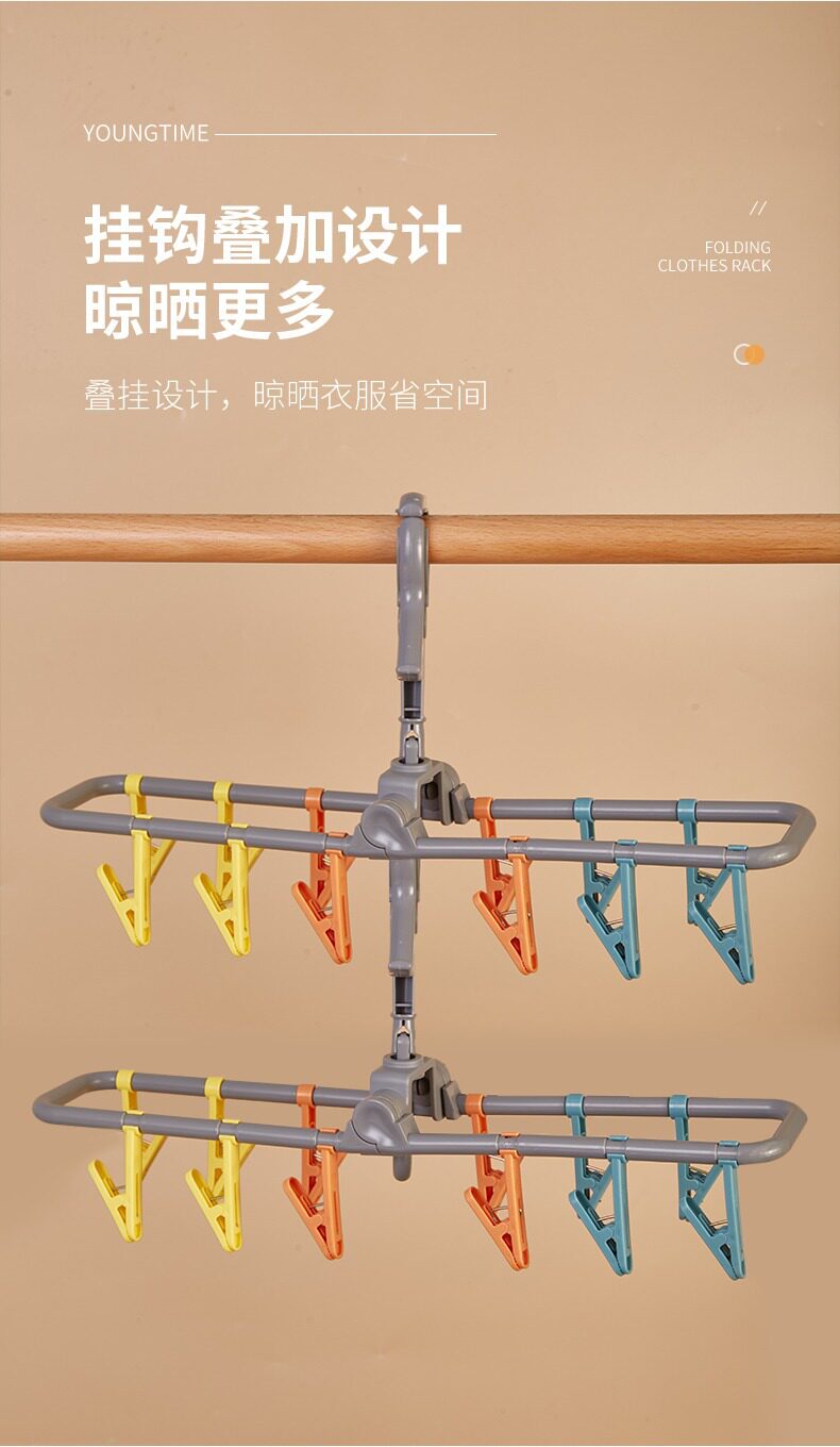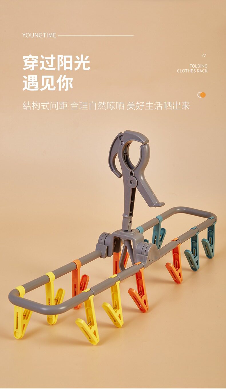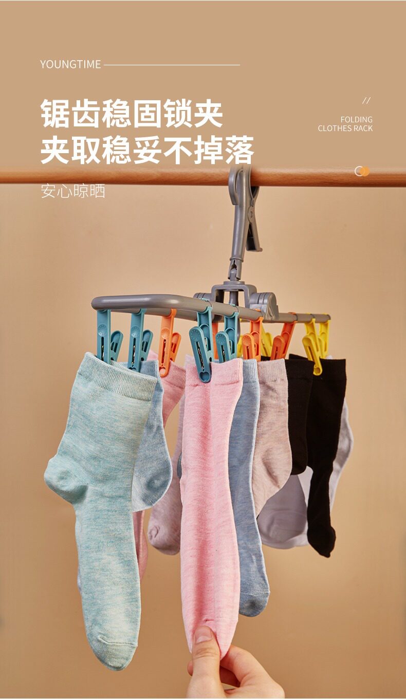 Clothes Hanger, Sock Drying Rack, Multi-Clip, Foldable, Portable, Traceless, for Infants and Toddlers, Multifunctional, Foldable, for Home Use