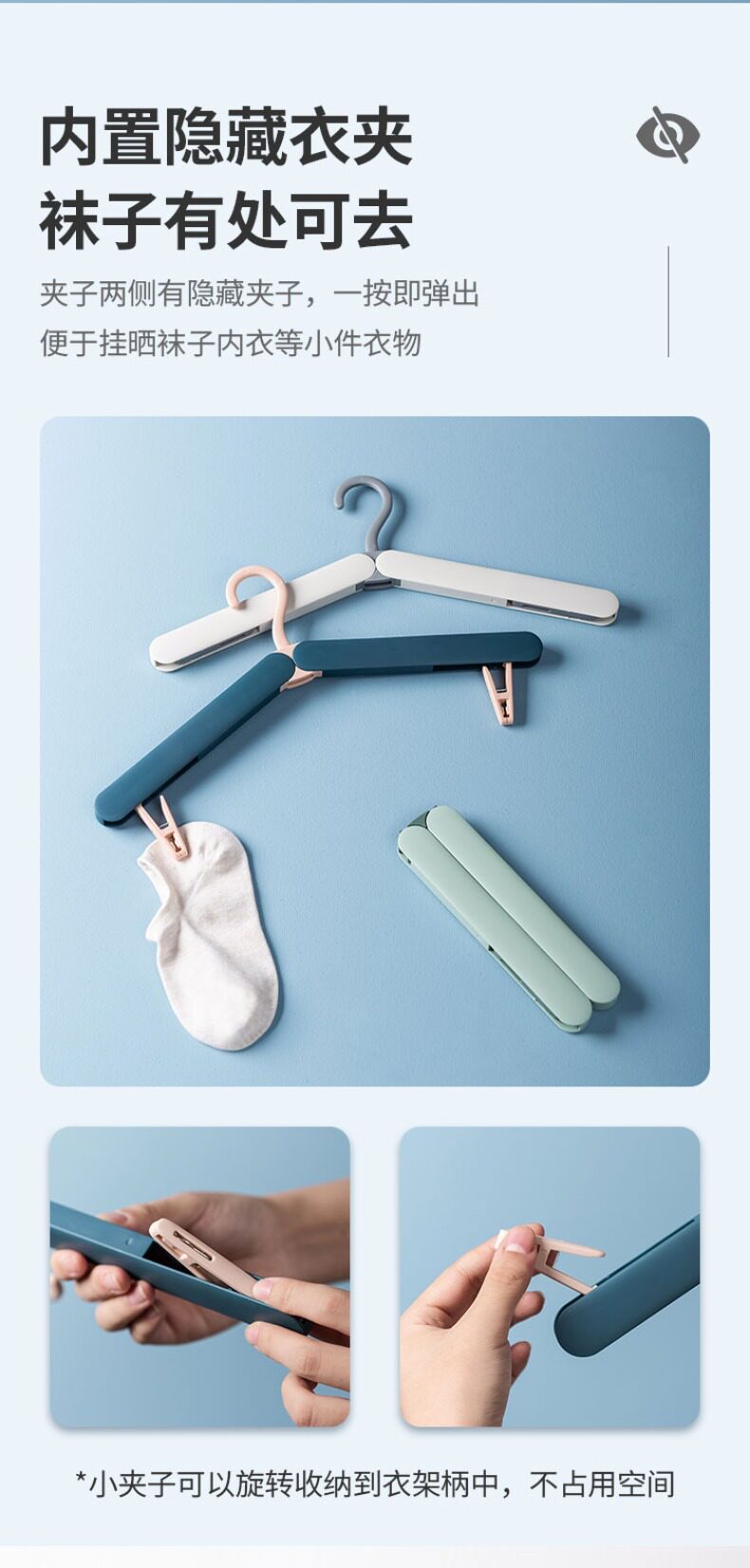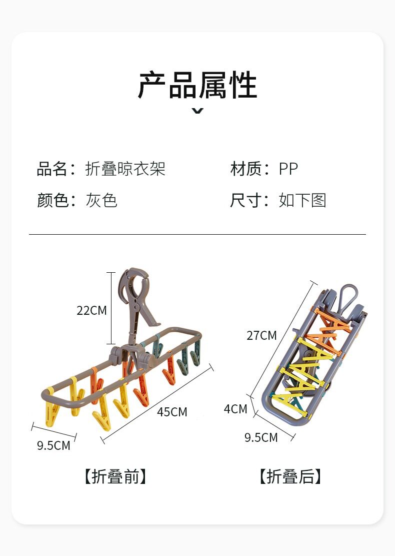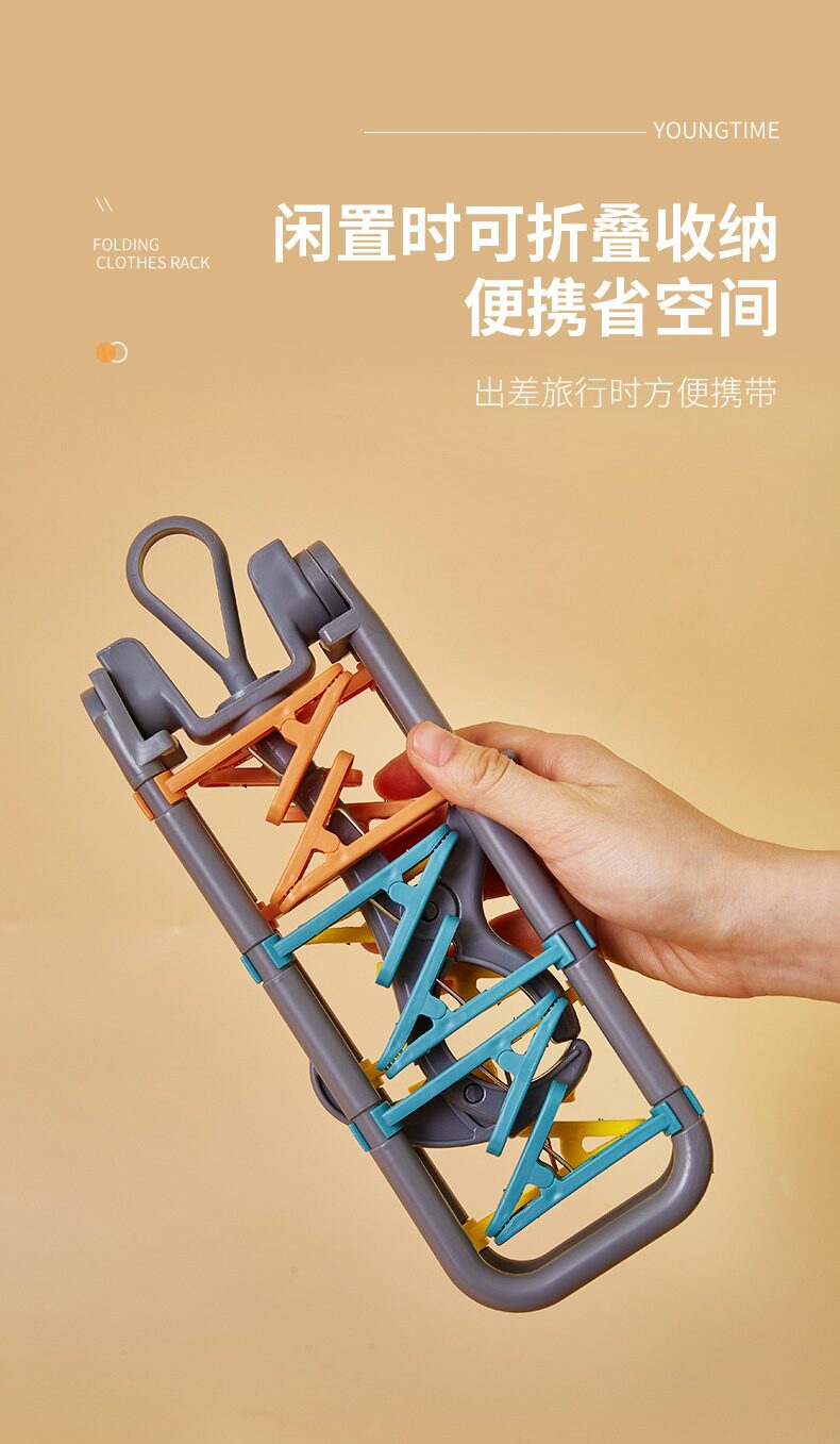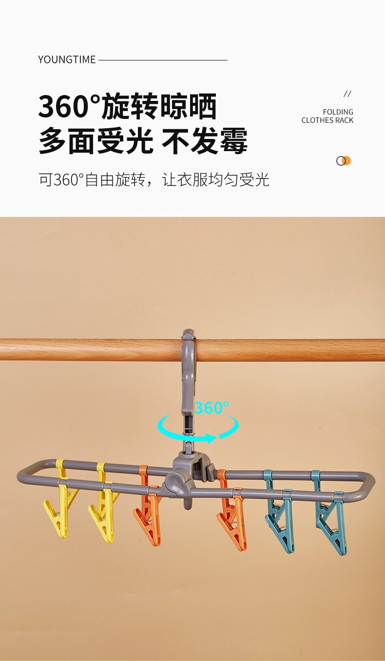 Clothes Hanger, Sock Drying Rack, Multi-Clip, Foldable, Portable, Traceless, for Infants and Toddlers, Multifunctional, Foldable, for Home Use