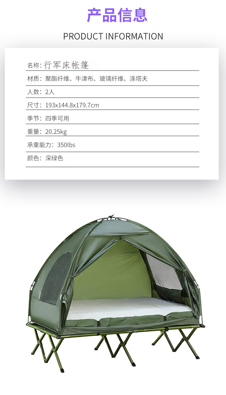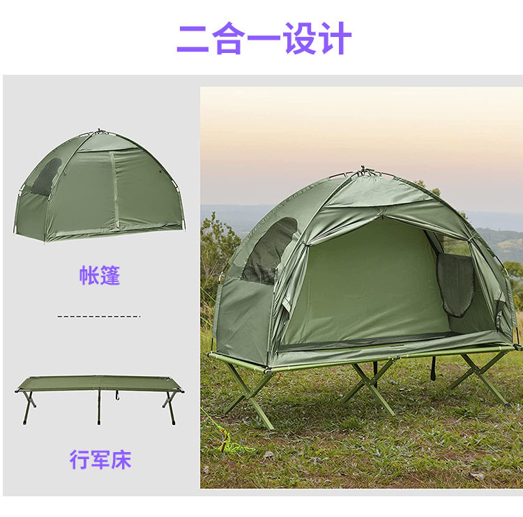 Outdoor Mountain Camping Style Off-The-Ground Tent Military Green Camp Bed Tent 4-in-1 Camping Style Multi-Functional Tent Manufacturer Customization