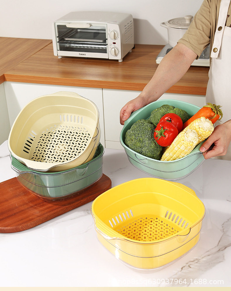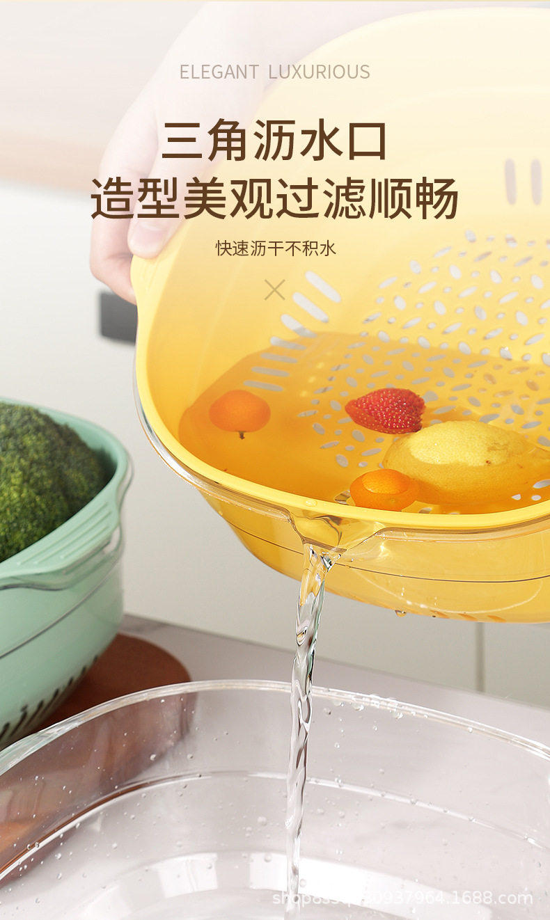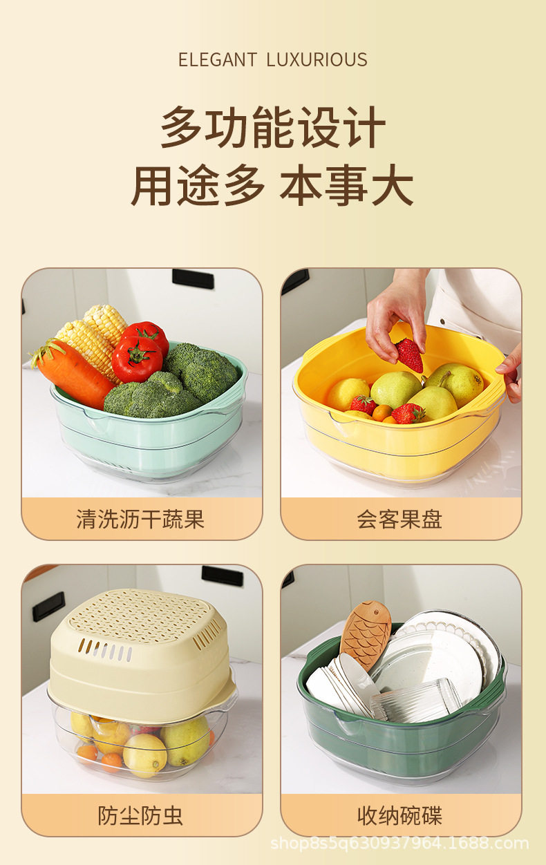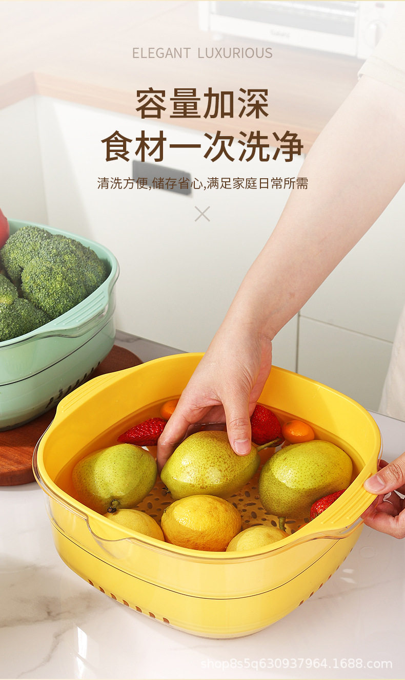 PET Thickened Double-Layer Household Kitchen Draining Basket High Appearance Value Vegetable Basket Living Room Vegetable Basket Fruit Washing Vegetable Basin