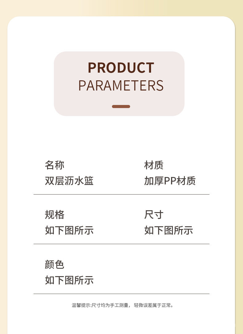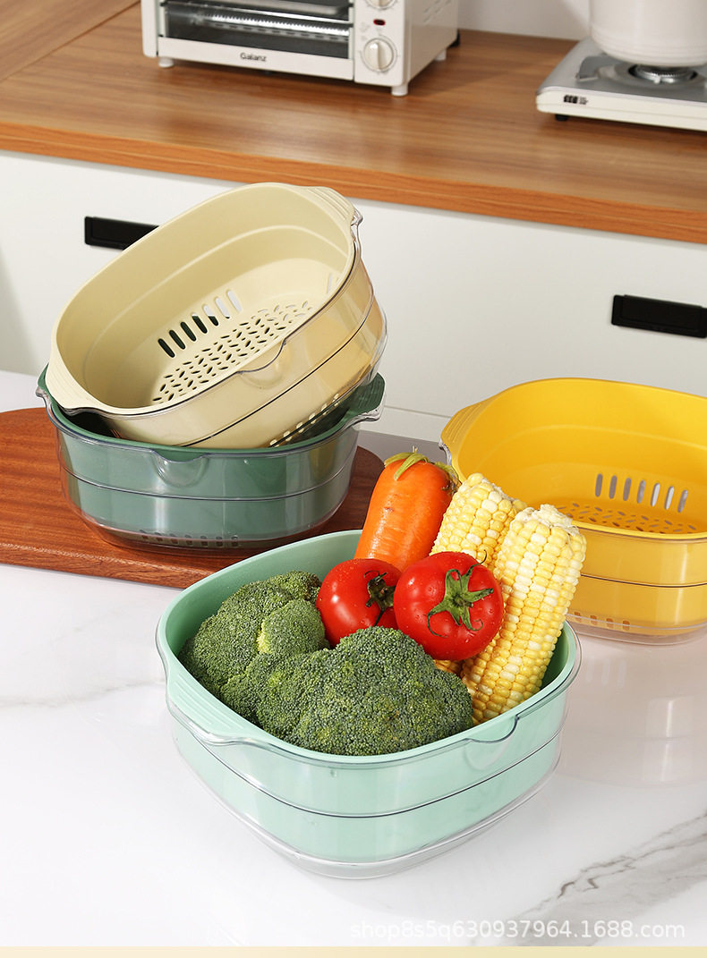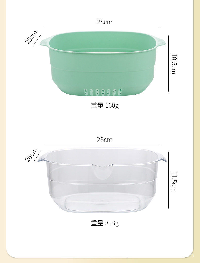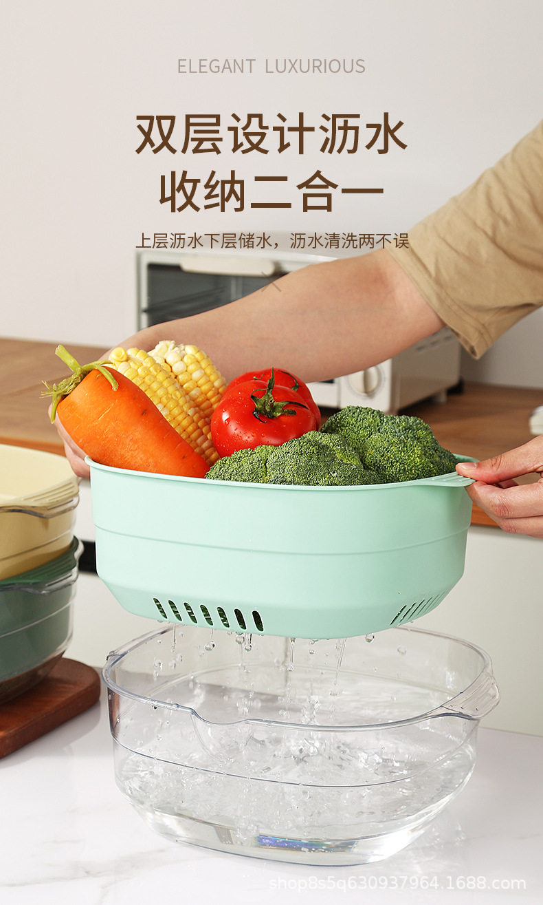 PET Thickened Double-Layer Household Kitchen Draining Basket High Appearance Value Vegetable Basket Living Room Vegetable Basket Fruit Washing Vegetable Basin