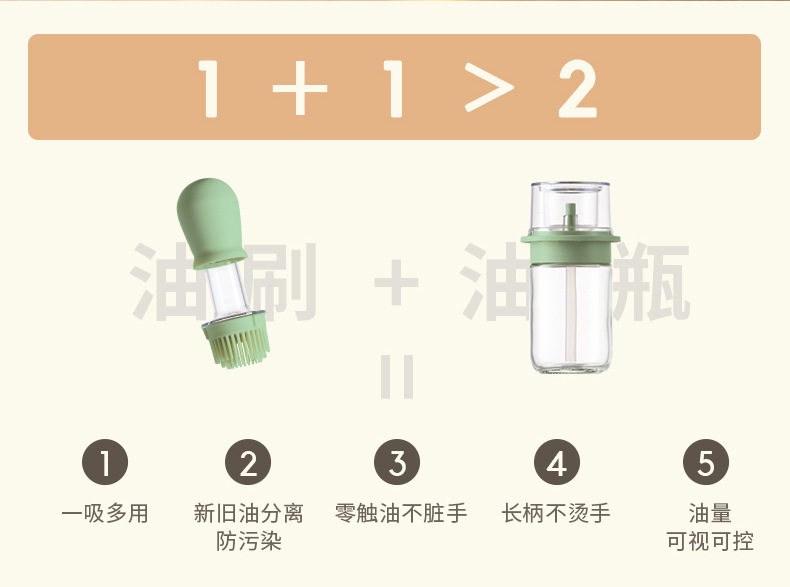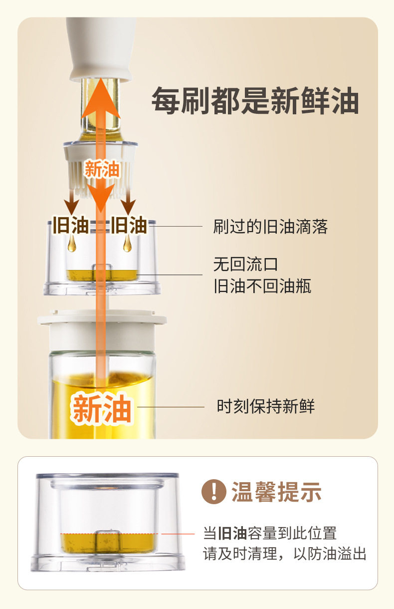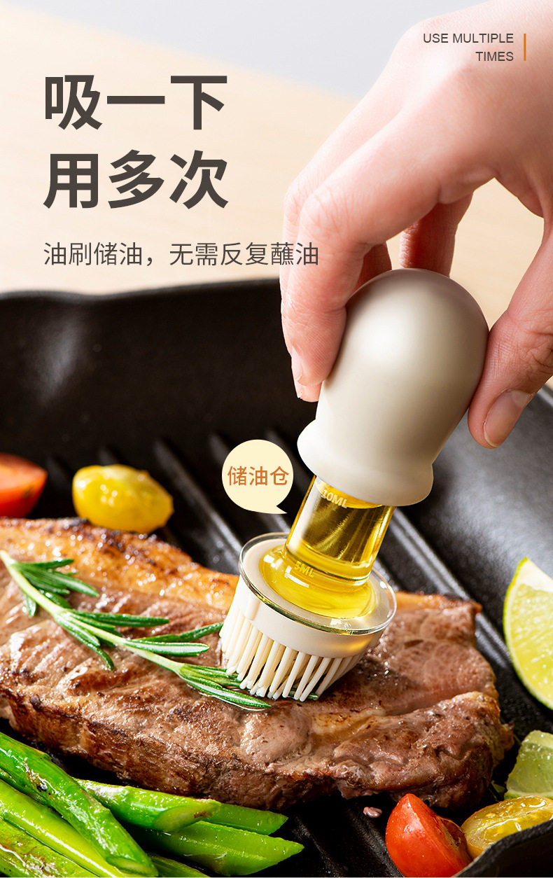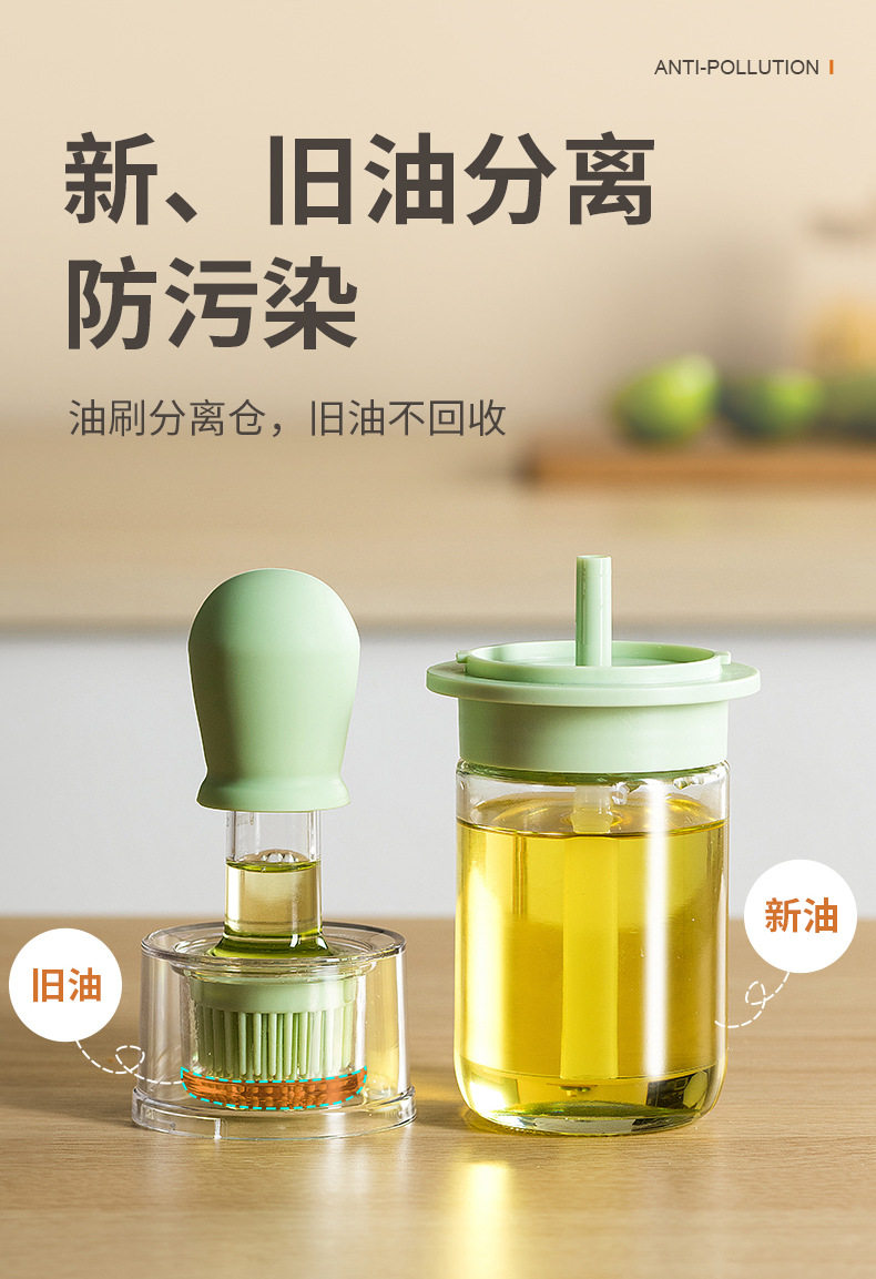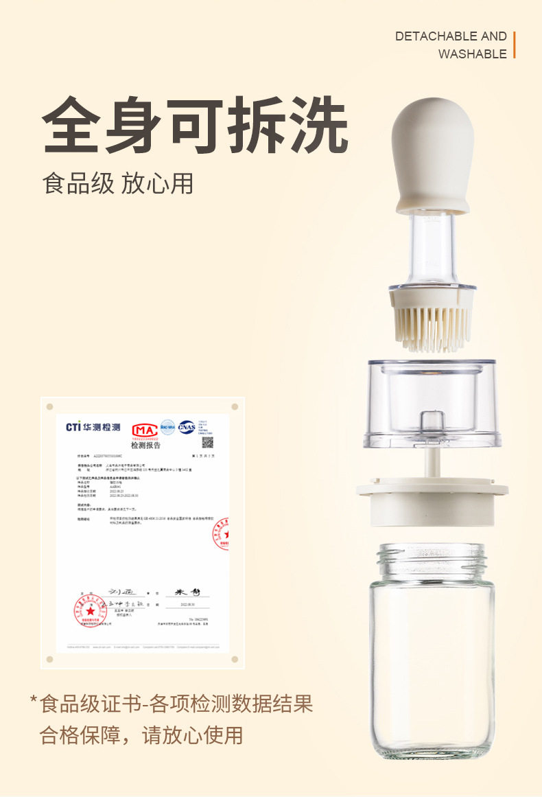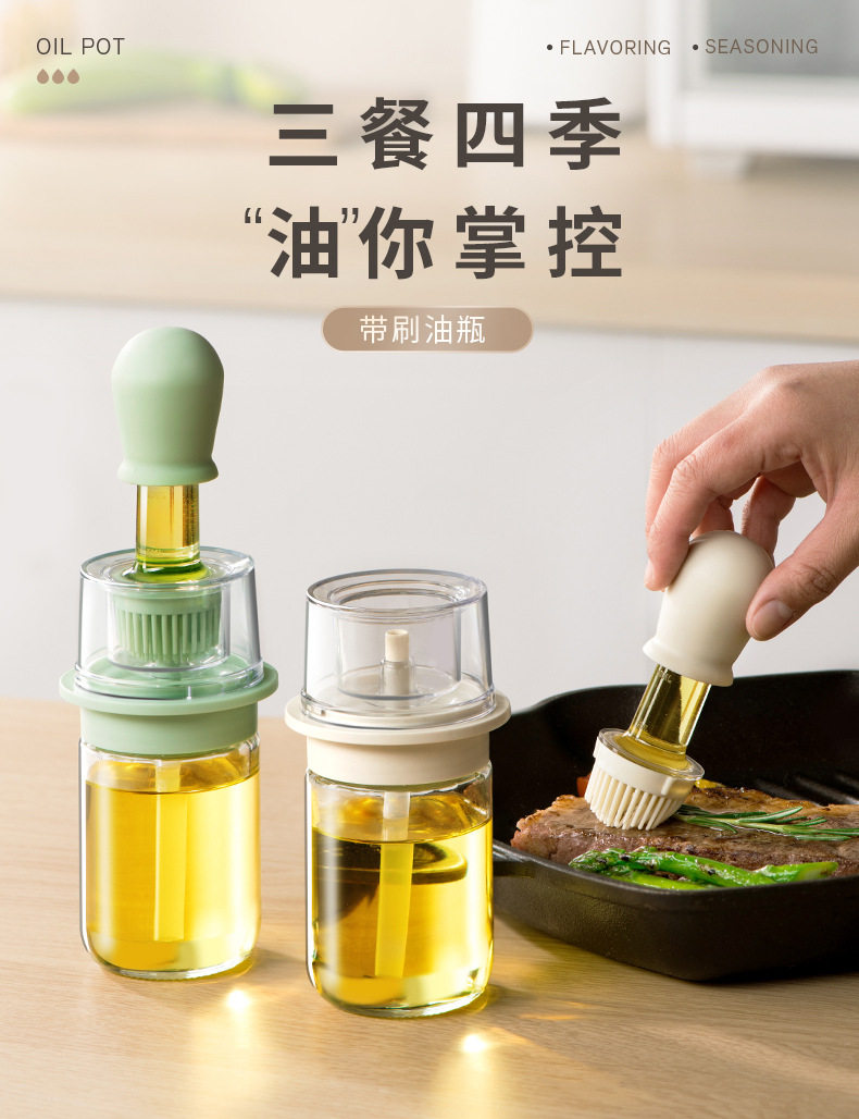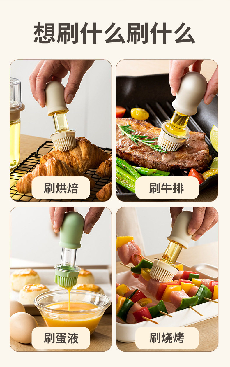 Self-designed oil storage brush high temperature resistant oil bottle integrated glass pancake barbecue brush oil brush with bottle silicone brush