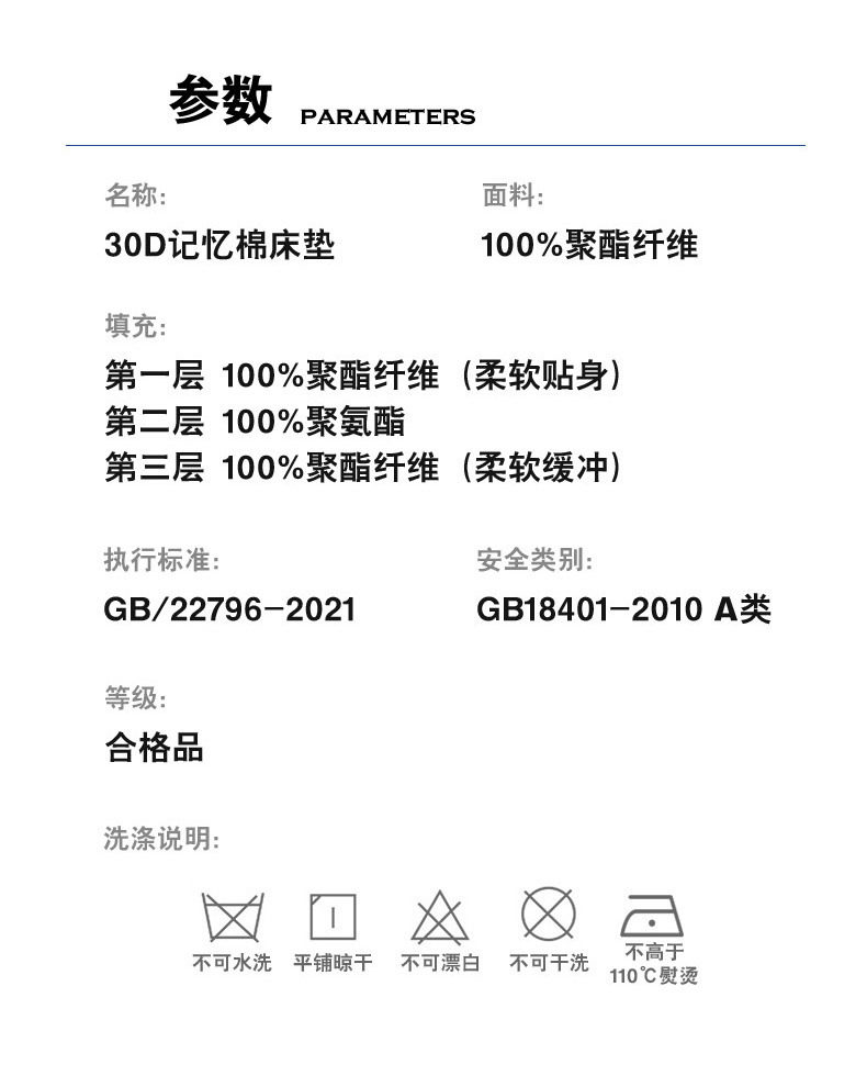 | Bedding subdivision | Memory mattress |