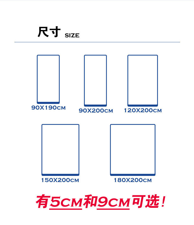 | Size specifications | 80*190cm,90*190cm,90*200cm,100*200cm,120*190cm,120*200cm,150*190cm,150*200cm,180*200cm |