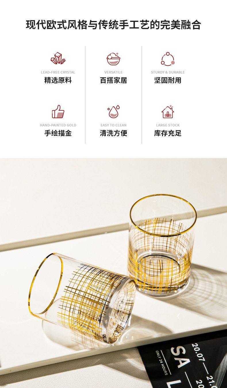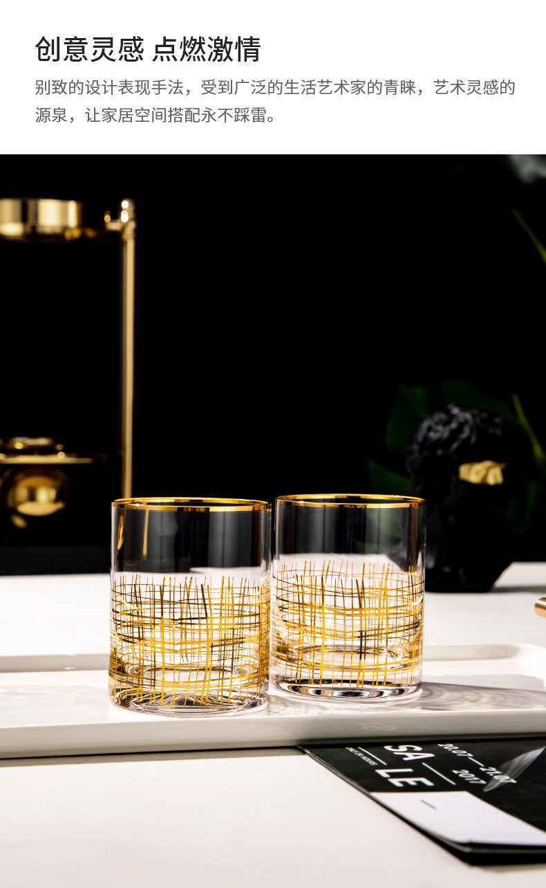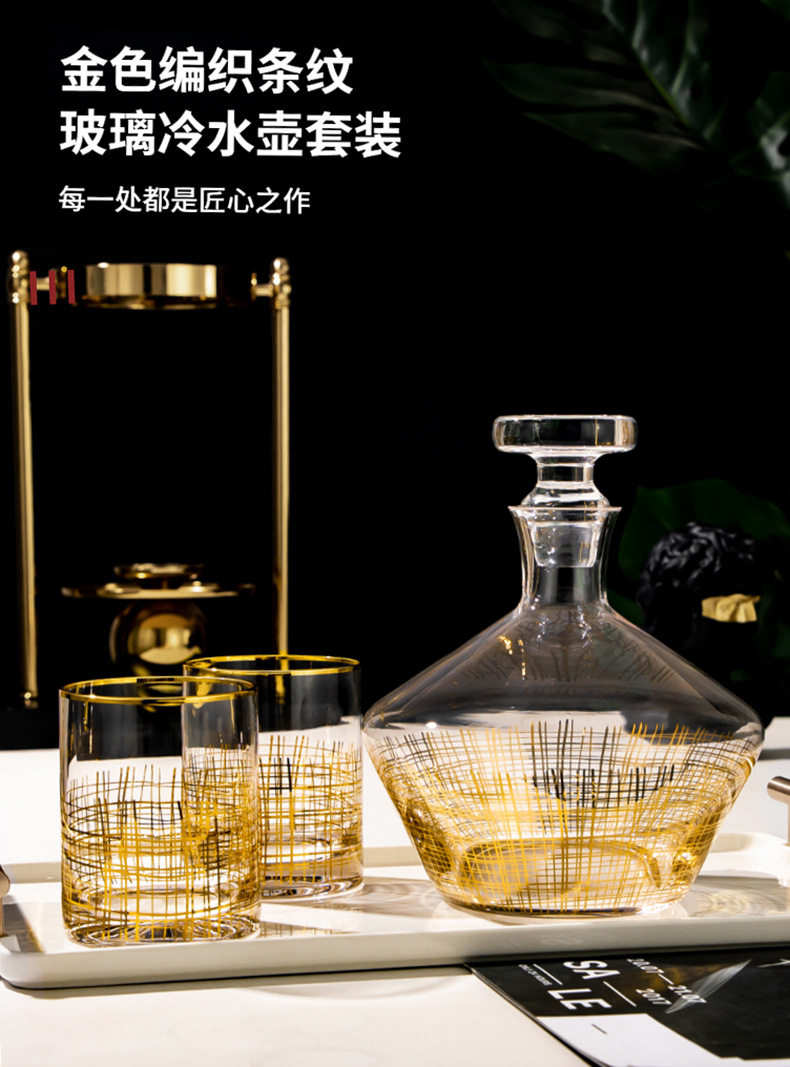 [Spot] new gold thread glass decanter model room wine cabinet decorative wine set household wine glass