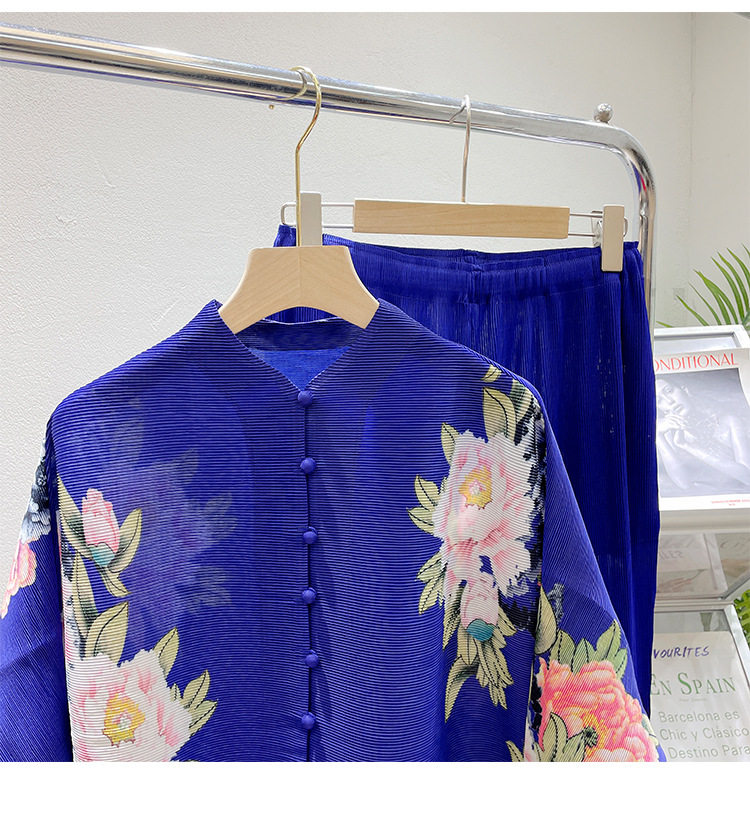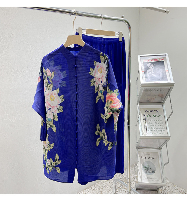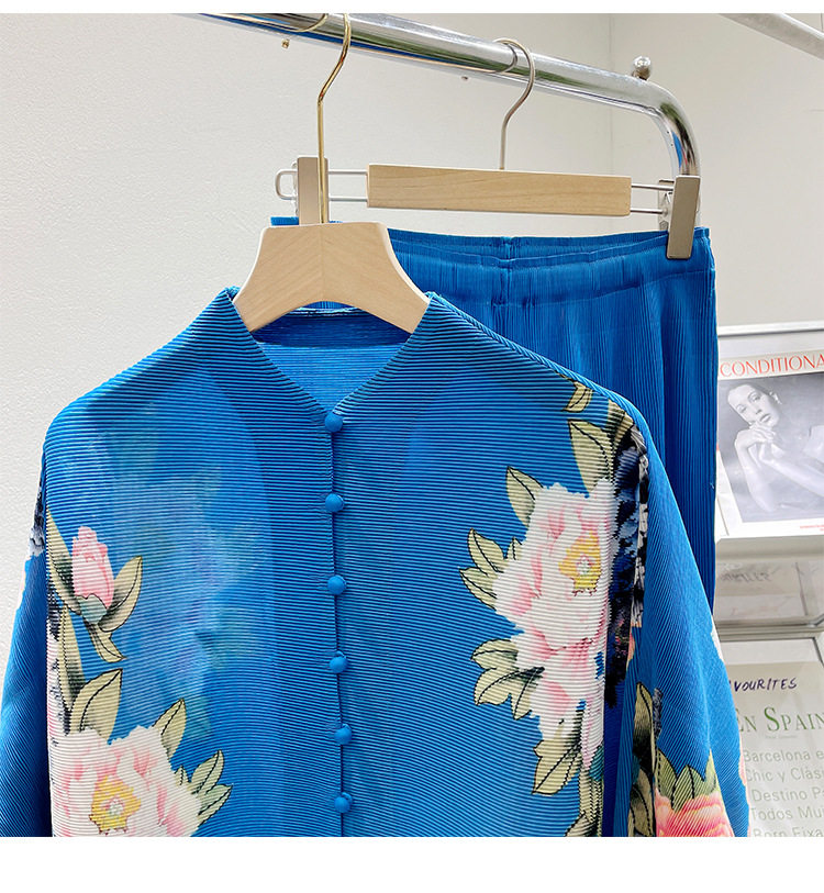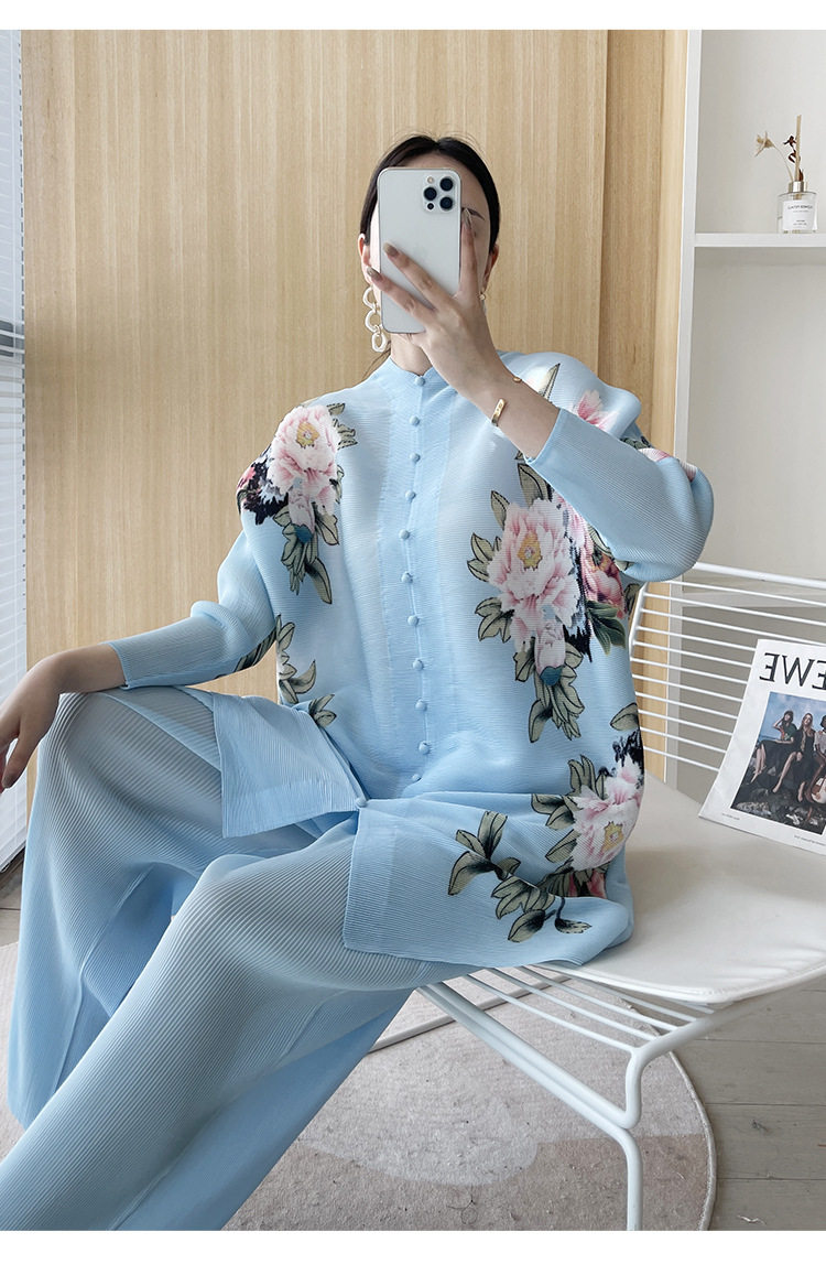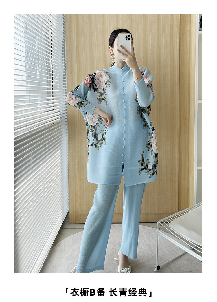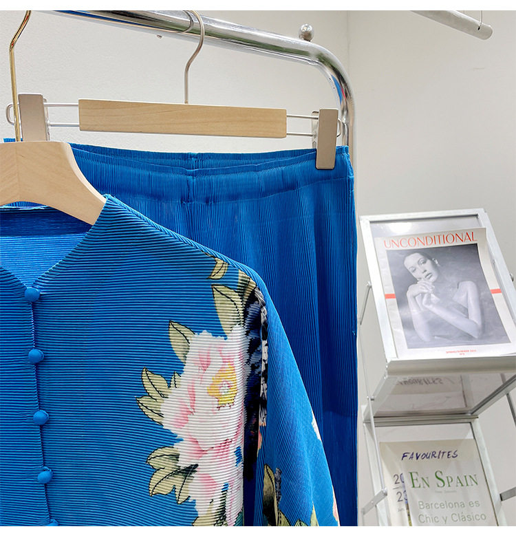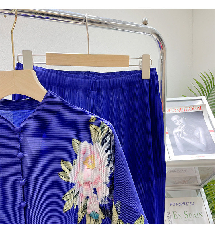 Pleated set 14-button set 2023 new Western-style large size breasted jacket + wide leg pants two-piece set slimming