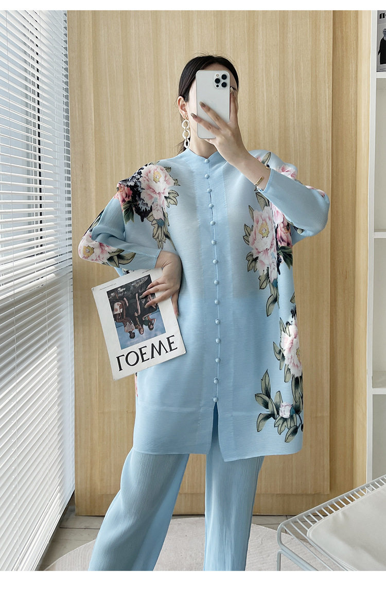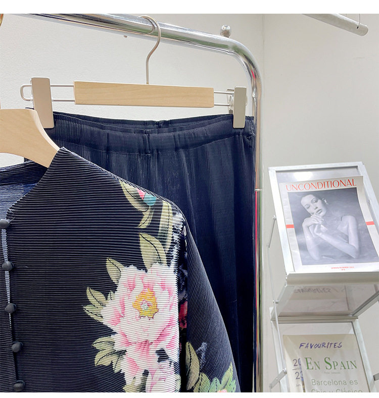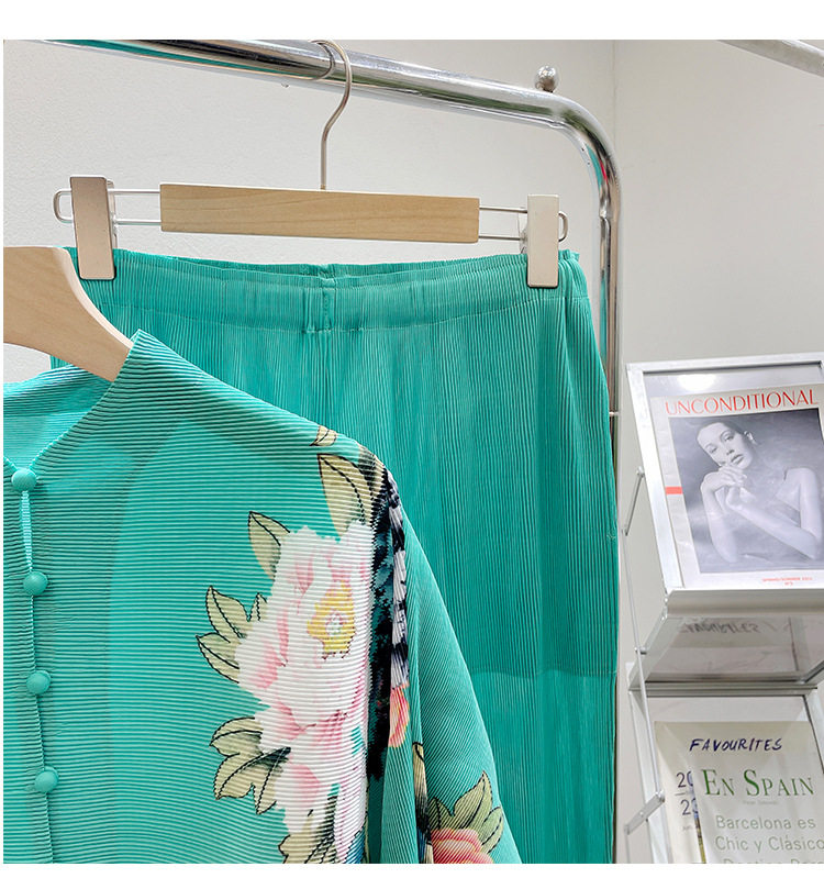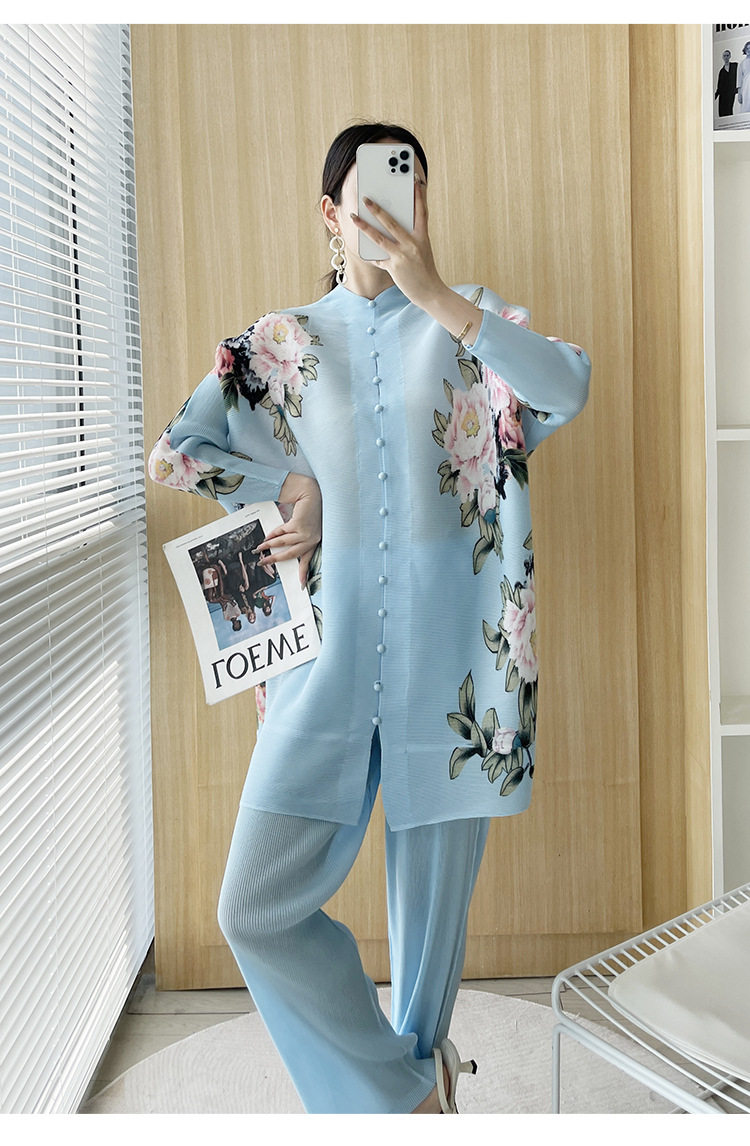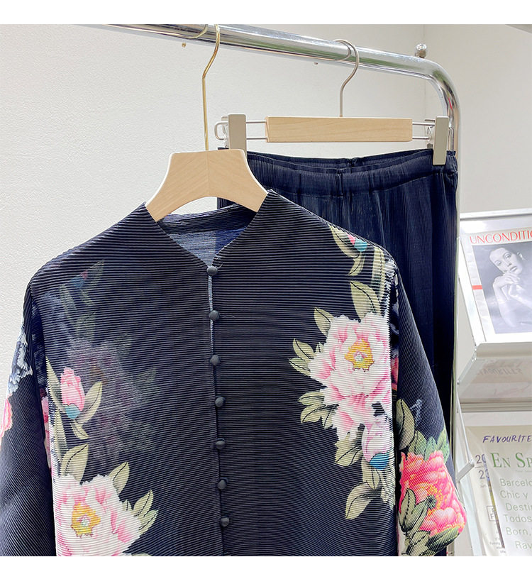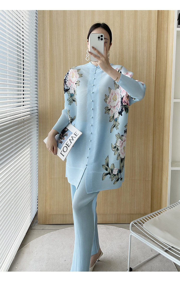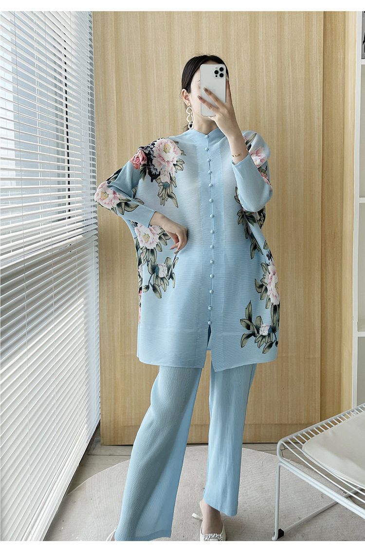 Pleated set 14-button set 2023 new Western-style large size breasted jacket + wide leg pants two-piece set slimming