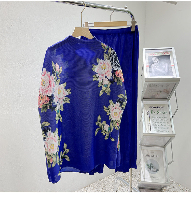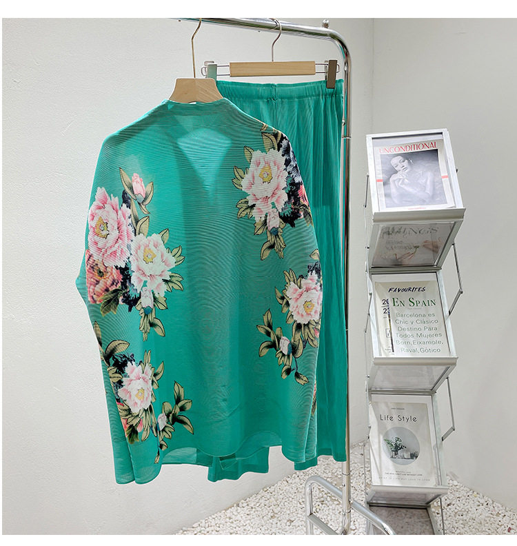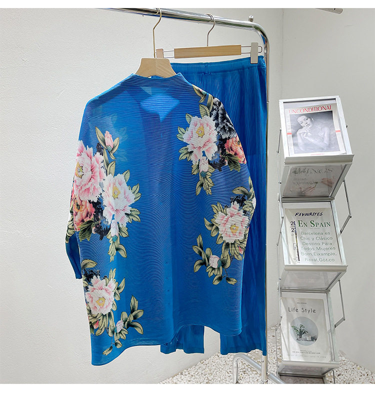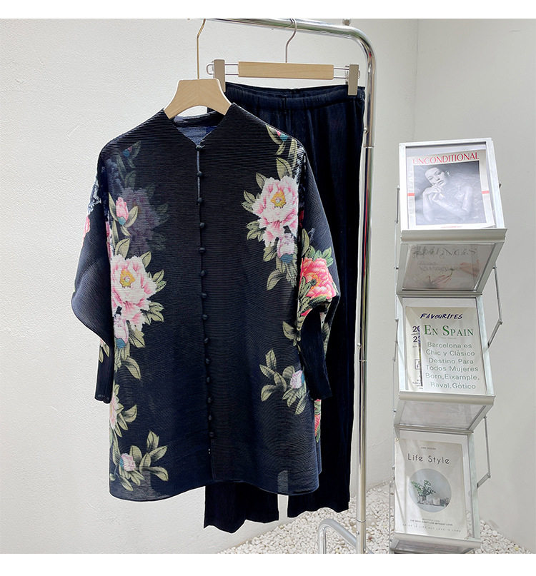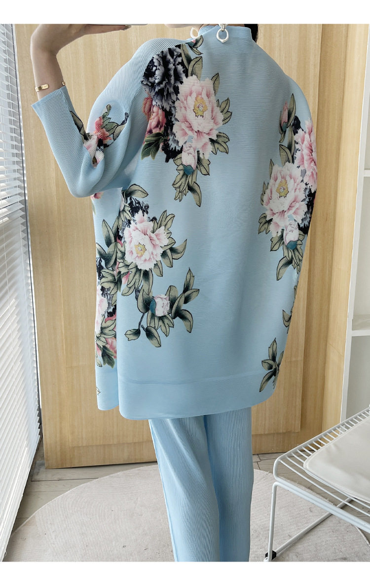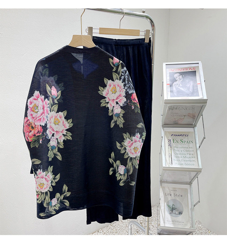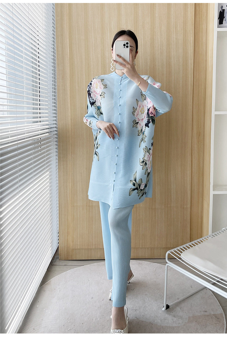 Pleated set 14-button set 2023 new Western-style large size breasted jacket + wide leg pants two-piece set slimming