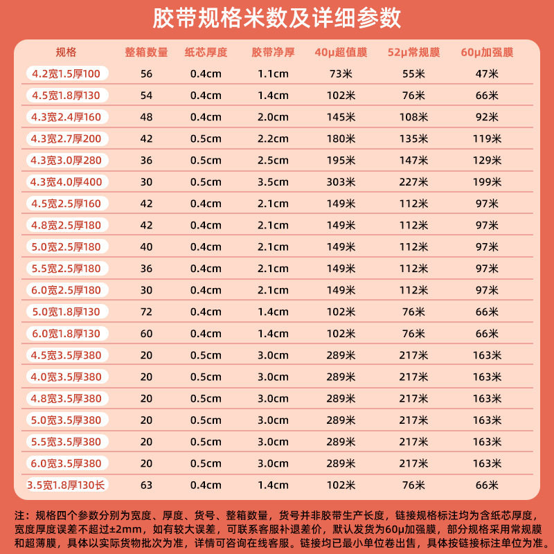 | Specifications and models | Transparent yellow * 4.2 wide 1.5 thick 100 long [whole box 56 volumes]],Transparent yellow * 4.5 wide 1.8 thick 110 long [whole box 54 volumes]],Transparent yellow * 3.5 wide 1.8 thick 110 long [whole box 63 volumes]],Transparent yellow * 4.0 wide 3.5 thick 200 long [whole box 28 rolls]],Transparent yellow * 4.3 wide 2.4 thick 150 long [whole box 48 volumes]],Transparent yellow * 4.5 wide 2.5 thick 160 long [whole box 42 volumes]],Transparent yellow * 4.8 wide 2.5 thick 160 long [whole box 42 volumes]],Transparent yellow * 5.0 wide 2.5 thick 160 long [whole box 40 rolls]],Transparent yellow * 5.5 wide 2.5 thick 160 long [whole box 36 volumes]],Transparent yellow * 6.0 wide 2.5 thick 160 long [whole box 30 rolls]],Transparent yellow * 4.5 wide 3.5 thick 240 [extended 20 volumes]],Transparent yellow * 4.8 wide 3.5 thick 240 [extended 20 volumes]],Transparent yellow * 5.0 wide 3.5 thick 240 [extended 20 volumes]],Transparent yellow * 5.5 wide 3.5 thick 240 [extended 20 volumes]],Transparent yellow * 6.0 wide 3.5 thick 240 [extended 20 volumes]],Transparent yellow * 4.5 wide 2.8 thick 190 long [whole box 42 volumes]],Transparent yellow * 5.0 wide 1.8 thick 110 long [whole box 72 volumes]],Transparent yellow * 6.0 wide 1.8 thick 110 long [whole box 60 rolls]],Clear understanding * 4.2 wide 1.5 thick 100 long [whole box 56 volumes]],It is clear that * 4.5 wide, 1.8 thick, 110 long [whole box 54 volumes]],It is clear that * 3.5 wide, 1.8 thick, 110 long [whole box, 63 volumes]],It is clear that * 4.0 wide, 3.5 thick, 200 long [28 volumes in the whole box]],It is clear that * 4.3 wide, 2.4 thick, 150 long [48 volumes in the whole box]],Clear understanding * 4.5 wide 2.5 thick 160 long [whole box 42 volumes]],It is clear that * 4.8 wide, 2.5 thick, 160 long [whole box 42 volumes]],It is clear that * 5.0 wide, 2.5 thick, 160 long [40 rolls in the whole box]],It is clear that * 5.5 wide, 2.5 thick, 160 long [36 volumes in the whole box]],It is clear that * 6.0 wide, 2.5 thick, 160 long [30 rolls in the whole box]],It is clear that * 4.5 wide and 3.5 thick 240 [extended 20 volumes]],It is clear that * 4.8 wide and 3.5 thick 240 [extended 20 volumes]],It is clear that * 5.0 wide and 3.5 thick 240 [extended 20 volumes]],It is clear that * 5.5 wide and 3.5 thick 240 [extended 20 volumes]],It is clear that * 6.0 wide and 3.5 thick 240 [extended 20 volumes]],Clear understanding * 4.5 wide 2.8 thick 190 long [whole box 42 volumes]],It is clear that * 5.0 wide, 1.8 thick, 110 long [72 volumes in the whole box]],It is clear that * 6.0 wide, 1.8 thick, 110 long [60 rolls in the whole box]],It is clear that * 4.2 wide and 2.2 thick hot selling money [whole box 42 volumes]],Beige opaque * 4.2 wide 1.5 thick 100 long [whole box 56 rolls]],Beige opaque * 4.5 wide 1.8 thick 110 long [whole box 54 rolls]],Beige opaque * 3.5 wide 1.8 thick 110 long [whole box 63 rolls]],Beige opaque * 4.0 wide 3.5 thick 200 long [whole box 28 rolls]],Beige opaque * 4.3 wide 2.4 thick 150 long [whole box 48 volumes]],Beige opaque * 4.5 wide 2.5 thick 160 long [whole box 42 volumes]],Beige opaque * 4.8 wide 2.5 thick 160 long [whole box 42 volumes]],Beige opaque * 5.0 wide 2.5 thick 160 long [whole box 40 rolls]],Beige opaque * 5.5 wide 2.5 thick 160 long [whole box 36 rolls]],Beige opaque * 6.0 wide 2.5 thick 160 long [whole box 30 rolls]],Beige opaque * 4.5 wide 3.5 thick 240 [extended 20 volumes]],Beige opaque * 4.8 wide 3.5 thick 240 [extended 20 volumes]],Beige opaque * 5.0 wide 3.5 thick 240 [extended 20 volumes]],Beige opaque * 5.5 wide 3.5 thick 240 [extended 20 volumes]],Beige opaque * 6.0 wide 3.5 thick 240 [extended 20 volumes]],Beige opaque * 4.5 wide 2.8 thick 190 long [whole box 42 volumes]],Beige opaque * 5.0 wide 1.8 thick 110 long [72 volumes]],Beige opaque * 6.0 wide 1.8 thick 110 long [whole box 60 rolls]] |