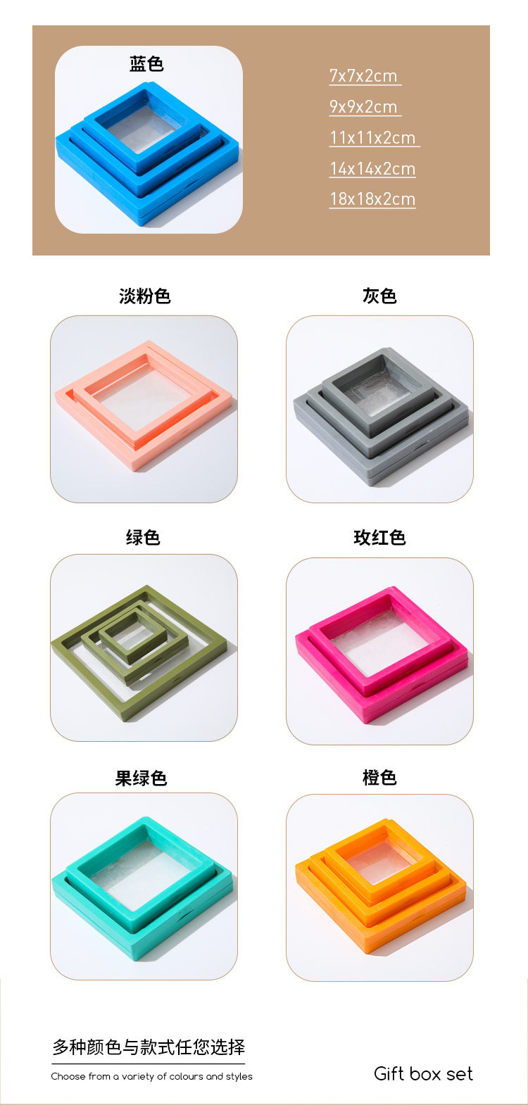 | Specification model | Black; 7*7*2 inner box,Black; 9*9*2 inner box,Black; 11*11*2 inner box,Black; 14*14*2 inner box,Black; 18*18*2 inner box,Black; 23*9*2 inner box,White; 7*7*2 inner box,White; 9*9*2 inner box,White; 11*11*2 inner box,White; 14*14*2 inner box,White; 18*18*2 inner box,Chinese red; 7*7*2 inner box,Chinese red; 9*9*2 inner box,Chinese red; 11*11*2 inner box,Chinese red; 14*14*2 inner box,Blue; 7*7*2 inner box,Blue; 9*9*2 inner box,Blue;11*11*2 inner box,Gray; 7*7*2 inner box,Gray; 9*9*2 inner box,Gray; 11*11*2 inner box,Light pink; 7*7*2 inner box,Light pink; 9*9*2 inner box,Light pink; 11*11*2 inner box,Fruit green; 7*7*2 inner box,Fruit green; 9*9*2 inner box,Fruit green; 11*11*2 inner box,Yellow; 7*7*2 inner box,Yellow; 9*9*2 inner box,Yellow; 11*11*2 inner box |