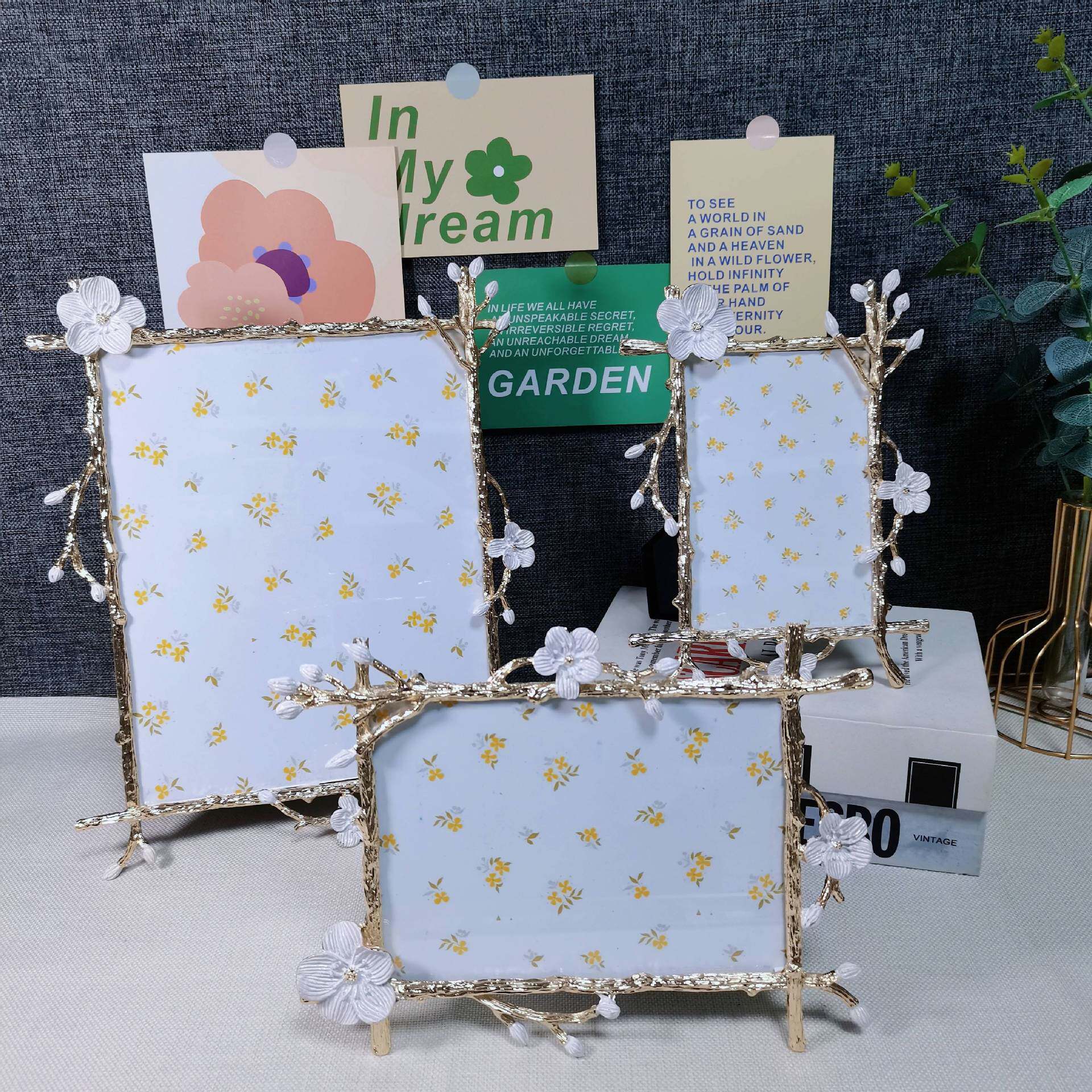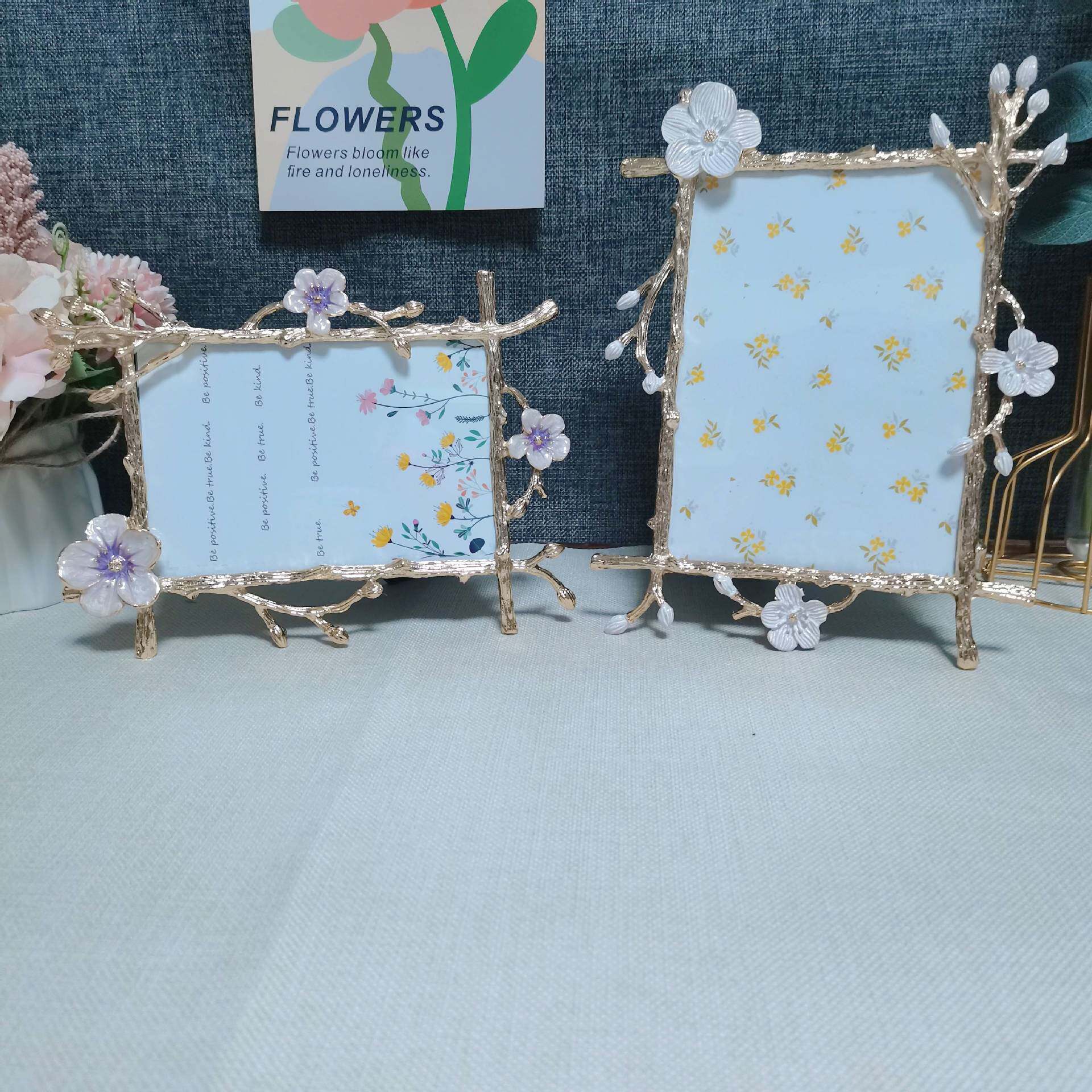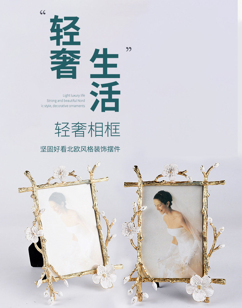 European Scandinavian Retro Golden Modern Simple Accessible Luxury Enamel Picture Frame Creative Metal Photo Frame Table Exquisite 67