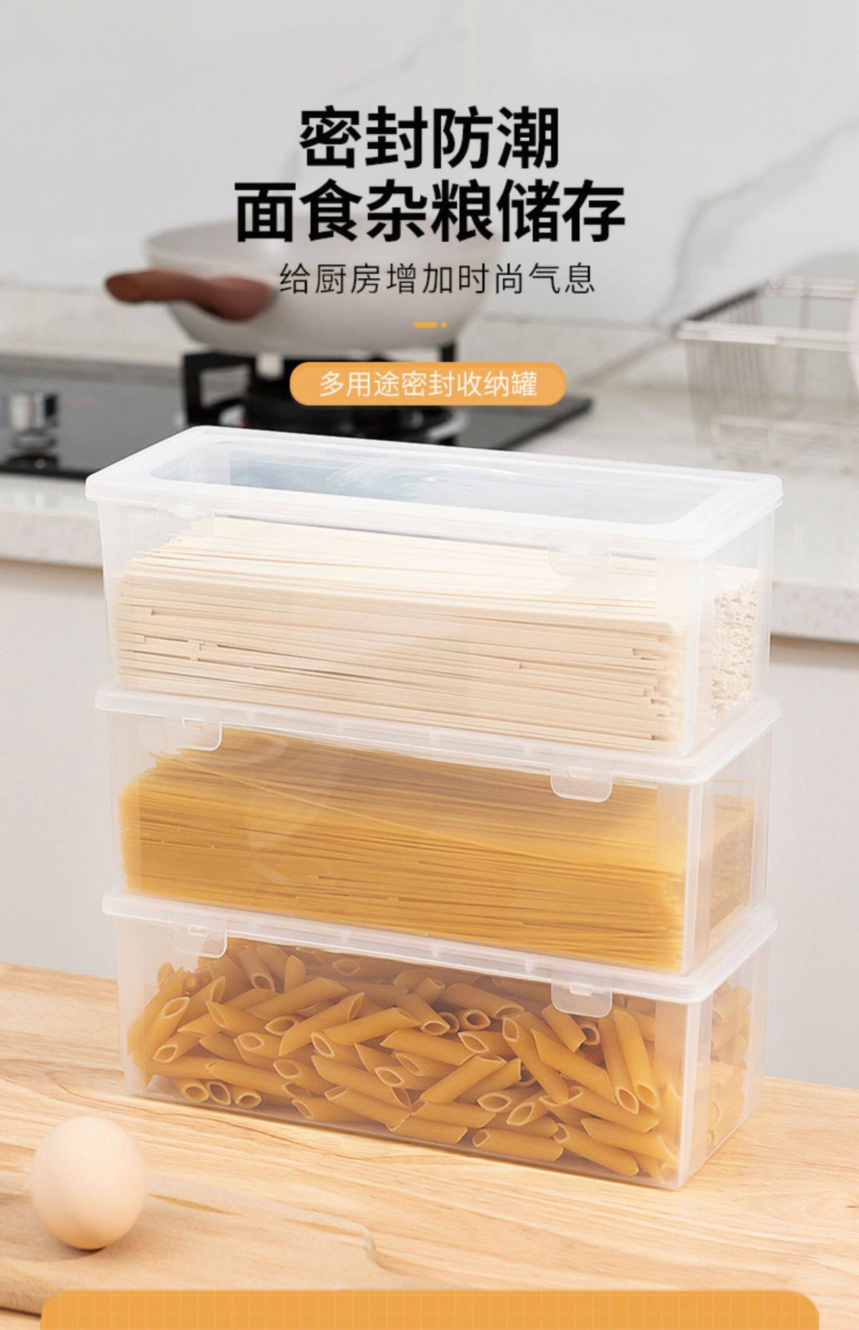 Rectangular Noodles Storage Box Food Grade Kitchen Cereals Noodles Plastic Sealed Refrigerator Fresh-keeping Box Japanese-style Box