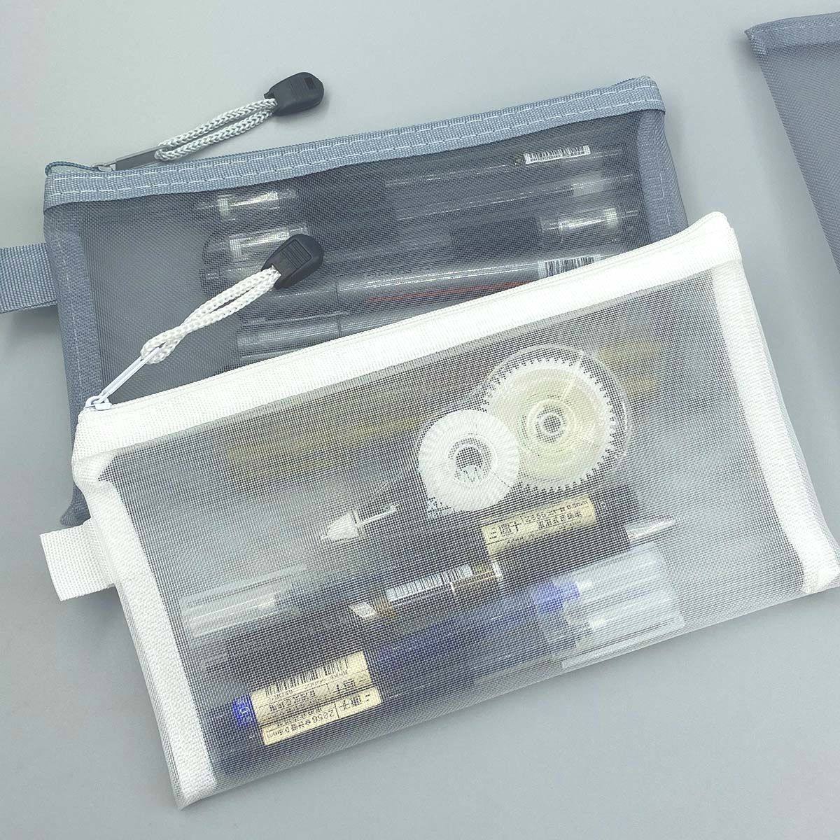 Transparent Mesh Pencil Bag Large Capacity Zipper Storage Bag Student Examination Portable Pencil Bag Stationery Bag Printable