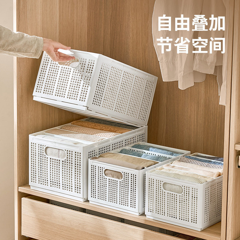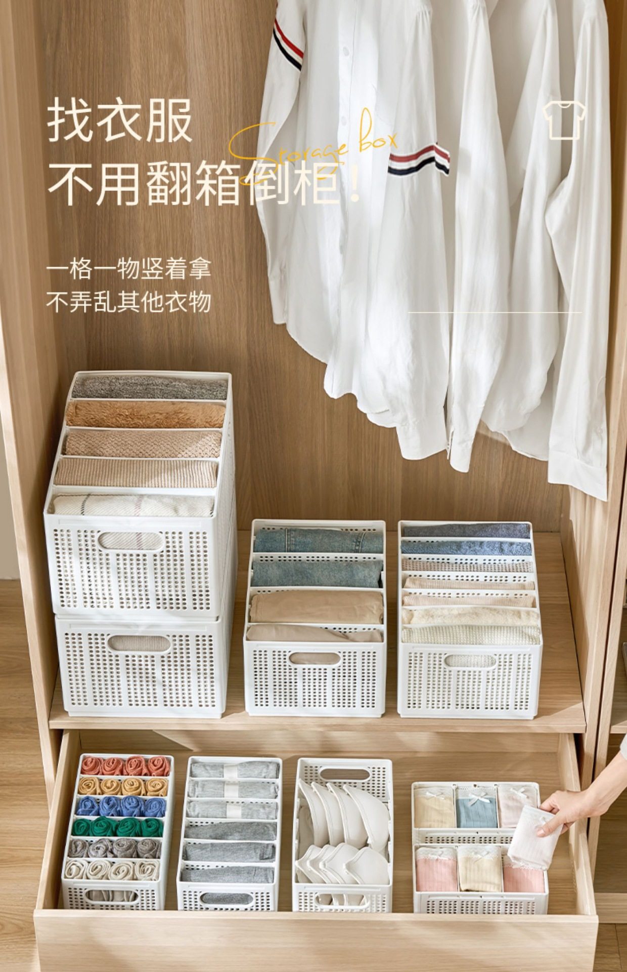 Bedroom wardrobe storage basket clothes pants folding storage basket plastic white separated wardrobe storage box