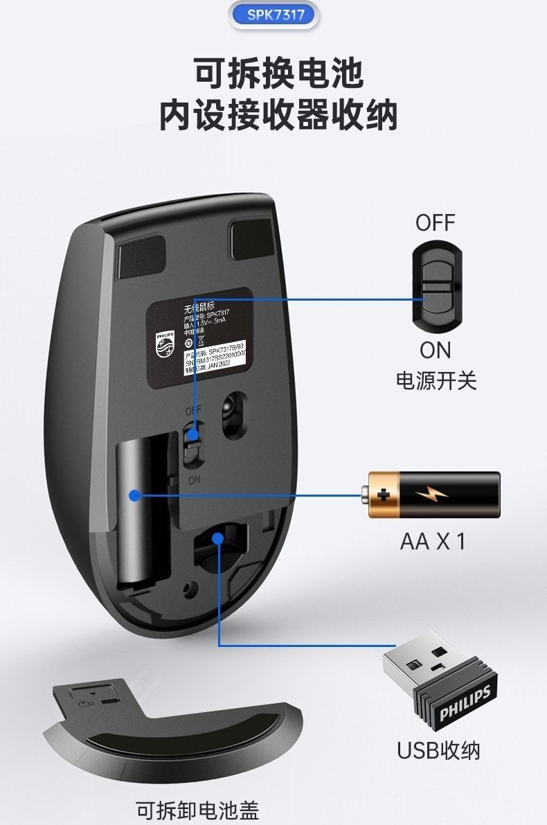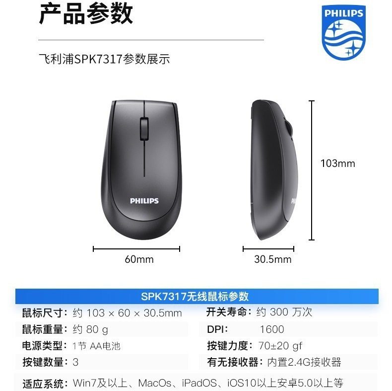 | Color | Philips SPK7317 Wireless Mouse,Philips 7347 Wireless Mouse,Patriot 710 Wireless Mouse,HP S1000 Wireless Mouse |