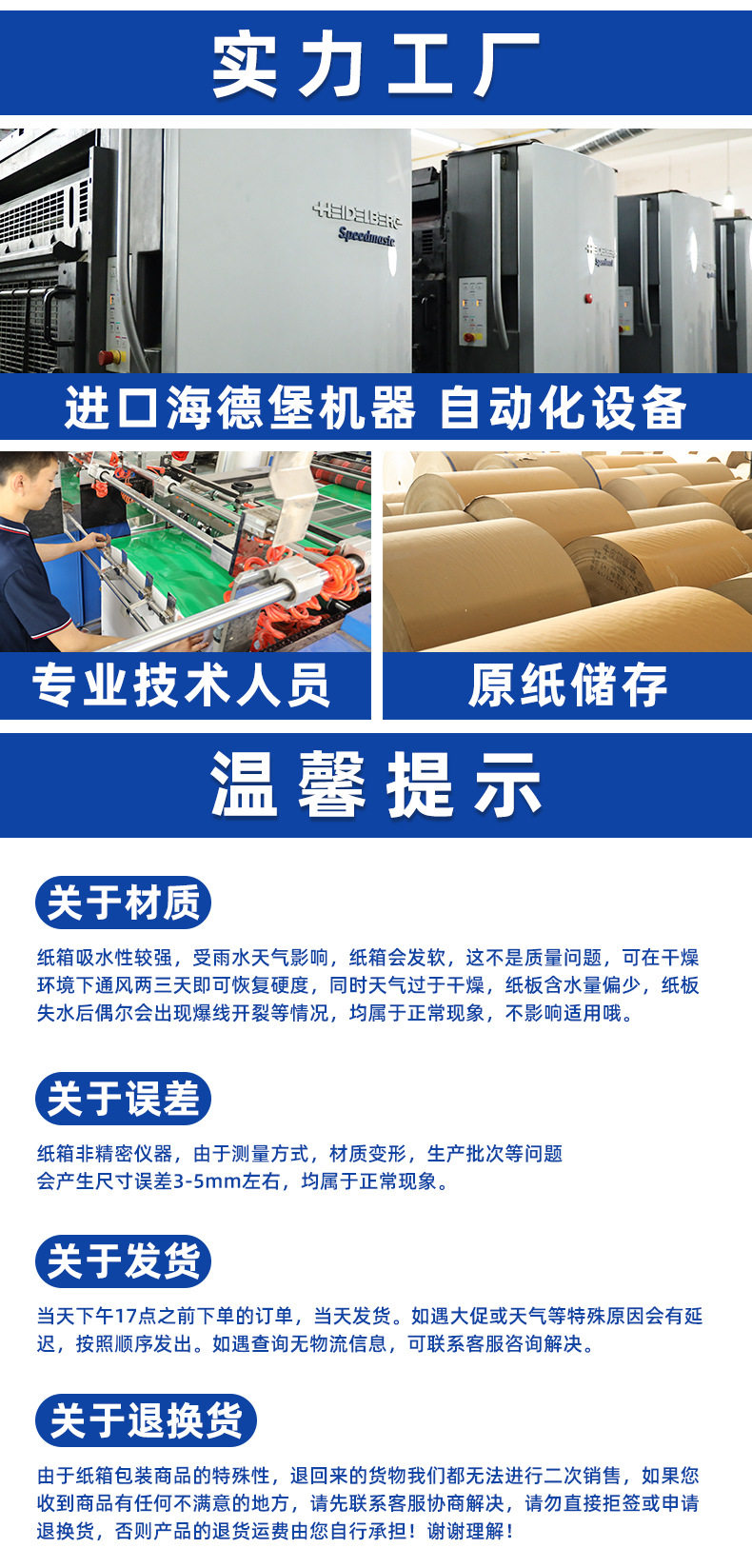 | Specifications and models | Kraft paper hard * 13*8*2.5CM,Kraft paper hardened * 14*9*3CM,Kraft paper hard * 15*10*4CM,Kraft paper hard * 15*10*6CM,Kraft paper hardened * T1: 15x15x5CM,Kraft paper hard * 18*11*5CM,Kraft paper hardened * 19*10*3CM,Kraft paper hardened * T2: 20x14x4CM,Kraft paper hardened * F19: 23.5x16.5x5CM,Kraft paper hardened * T3: 27x16.5x5CM,Kraft paper hardened * T4: 25x20x7CM,Kraft paper hardened * T5: 30x20x5CM,Kraft paper hardened * T8-1: 32x26x4CM,Kraft paper hardened * T9: 30x20x8CM,Kraft paper hardened * T10: 30x20x10CM,Kraft paper hardened * F3: 30x26x6CM,Kraft paper hardened * F5: 36x26x4CM,Kraft paper hardened * F8: 36x26x6CM,Kraft paper hardened * F9: 40x30x8CM,Kraft paper hardened * F10: 40x30x4CM,Kraft paper hardened * F11: 40x30x10CM,Kraft paper hardened * F12: 40x30x6CM,Kraft paper hardened * F16: 42x32x7CM,Kraft paper hardened * F17: 45x35x8CM,Kraft paper hard * T5: 30x20x5CM,Kraft paper special hard * T8-1: 32x26x4CM,Kraft paper hard * T9: 30x20x8CM,Kraft paper hard * T10: 30x20x10CM,Kraft paper hard * F5: 36x26x4CM,Kraft paper hard * F8: 36x26x6CM,Kraft paper hard * F9: 40x30x8CM,Kraft paper hard * F10: 40x30x4CM,Kraft paper hard * F11: 40x30x10CM,Kraft paper hard * F12: 40x30x6CM,Kraft paper hard * F17: 45x35x8CM |