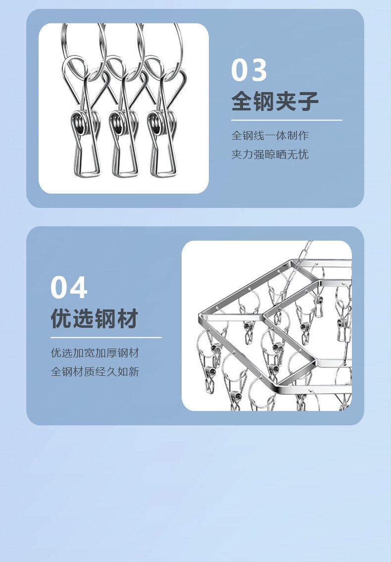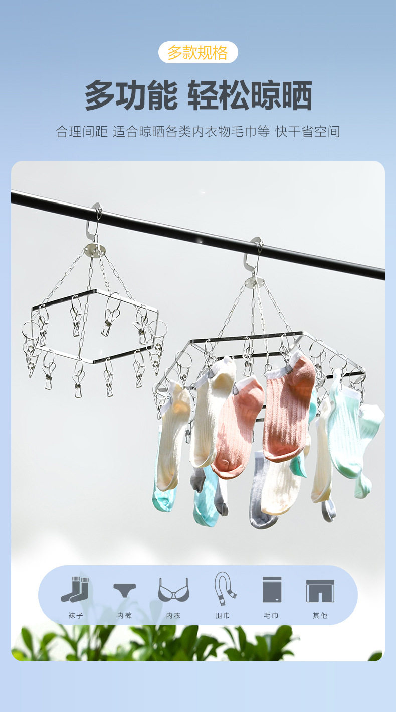 Stainless Steel Sock Rack Solid Multi-Head Windproof Sock Drying Rack Baby Clothes Drying Rack Underwear Rack