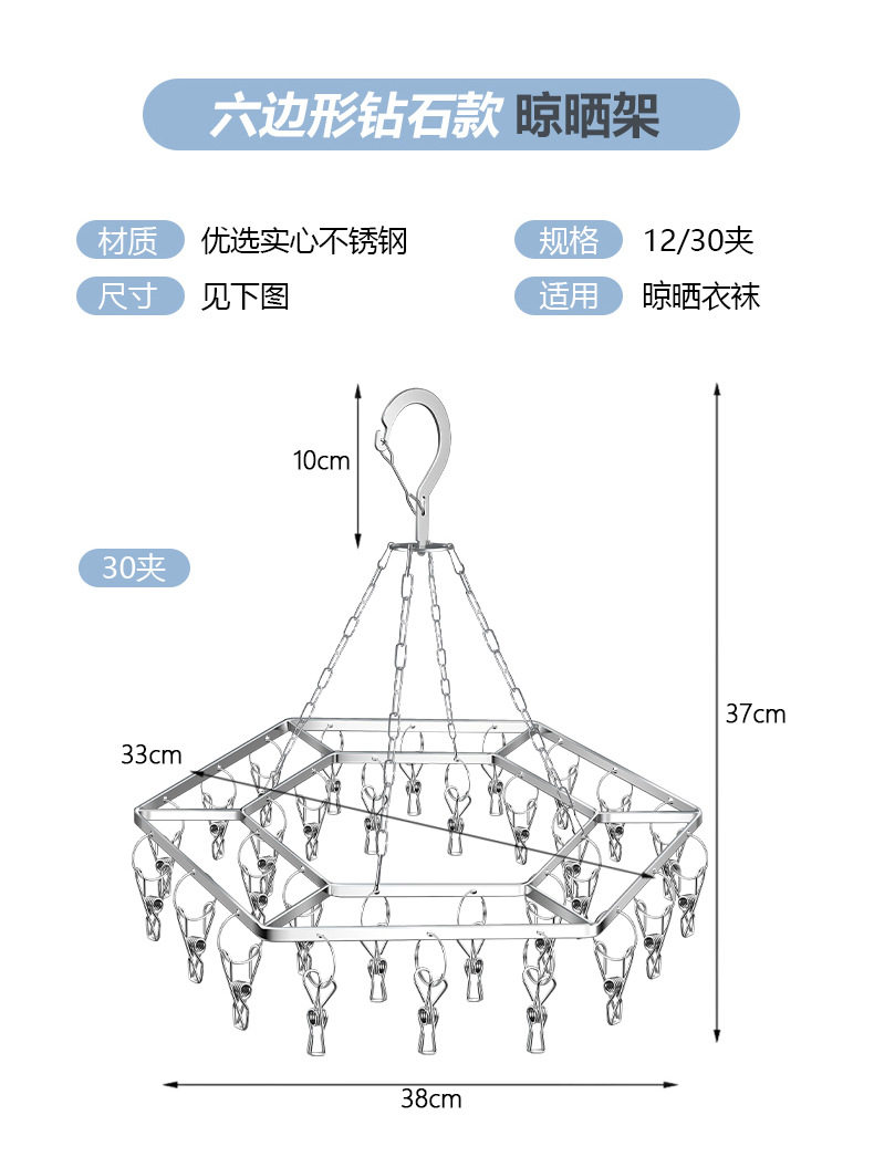 Specifications Hexagonal diamond hosiery 30 clip (flat clip) gold,Hexagonal diamond hosiery 30 clip (clip) natural color,Hexagonal diamond hosiery 30 clip (clip) gold,Hexagonal diamond socks rack 12 clip