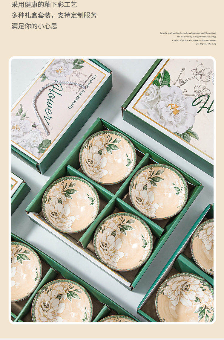 | Color | ㊋Camellia 2 bowls 2 chopsticks gift box,Camellia✺★4 bowls and chopsticks,Camellia 6 bowls and chopsticks,Good luck in the year of the horse 2 bowls,Good luck in the year of the horse 4 bowls,Good luck in the year of the horse 6 bowls,Black rose 2 bowls,Black rose 4 bowls,Black rose 6 bowls,National treasure panda (printed outside) 2 bowls,National treasure panda (printed outside) 4 bowls,National treasure panda (printed outside) 6 bowls,2 bowls of red roses,4 bowls of red roses,6 bowls of red roses,2 bowls of flowers,4 bowls of flowers,6 bowls of flowers,Good luck 2 bowls and chopsticks,Good luck 4 bowls and chopsticks,Good luck 6 bowls and chopsticks,Shishi ruyi 2 bowls and chopsticks,Shishi ruyi 4 bowls and chopsticks,Shishi ruyi 6 bowls and chopsticks,Xionglu 2 bowls and chopsticks,Bear deer✺4 bowls and chopsticks,Xionglu 6 bowls and chopsticks,Panda 2 bowls and chopsticks,Panda 4 bowls and chopsticks,★Panda 6 bowls and chopsticks,Bohemian 2 bowls and chopsticks,Bohemian 4 bowls and chopsticks,Bohemian 6 bowls and chopsticks,Qingyao 2 bowls and chopsticks,Qingyao 4 bowls and chopsticks,Qingyao 6 bowls and chopsticks,A little thought 2 bowls and chopsticks,A little thought 4 bowls and chopsticks,A little thought 6 bowls and chopsticks,Tulip 2 bowls 2 chopsticks,Tulip 4 bowls 4 chopsticks,Tulip 6 bowls 6 chopsticks,Polka dot 2 bowls 2 chopsticks,Polka dot 4 bowls 4 chopsticks,Polka dot 6 bowls 6 chopsticks,Guochao koi 2 bowls 2 chopsticks,Guochao koi 4 bowls 4 chopsticks,Guochao koi 6 bowls and 6 chopsticks,Cow 6 bowls,Cow 4 bowls,One camellia bowl (not shipped individually) without box,Green box bohemian 2 bowls,Green box bohemian 4 bowls,Green box bohemian 6 bowls,2 bowls of peace and joy,4 bowls of peace and joy,Peace and joy 6 bowls,2 bowls of blessing,4 bowls of happiness,6 bowls of blessing,Instant success 2 bowls,Instant success 4 bowls,Instant success 6 bowls |