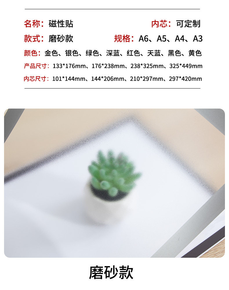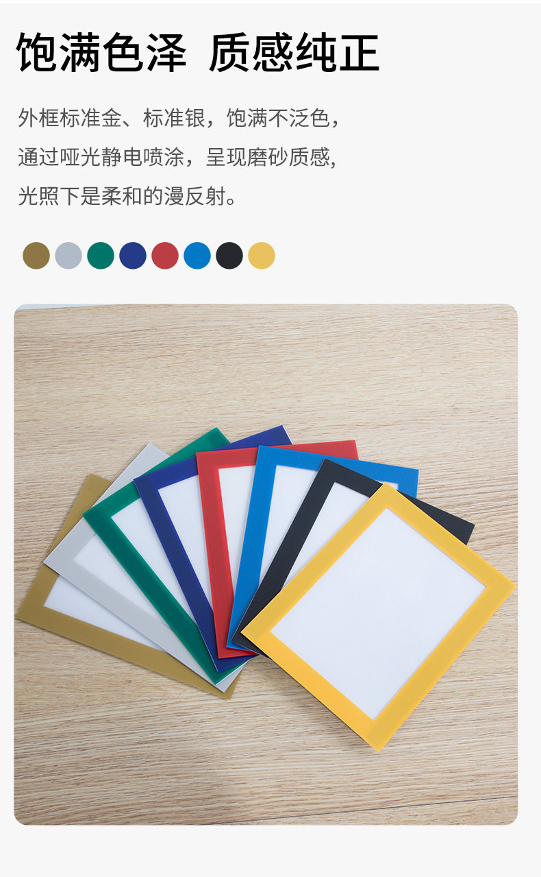 | Inner frame size | A3 gold,A3 silver,A3 sky blue,A3 deep blue,A3 black,A3 red,A3yellow,A3 green,A4 gold,A4 silver,A4 dark blue,A4 sky blue,A4 black,A4 red,A4yellow,A4 white,A4 green,A5 black,A5 gold,A5 silver,A6 gold,A6 silver,A6 black,8k gold,8k silver,8k black |
