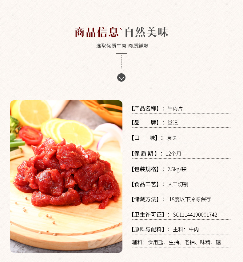 | Packaging specifications | 500g pure beef slices |
