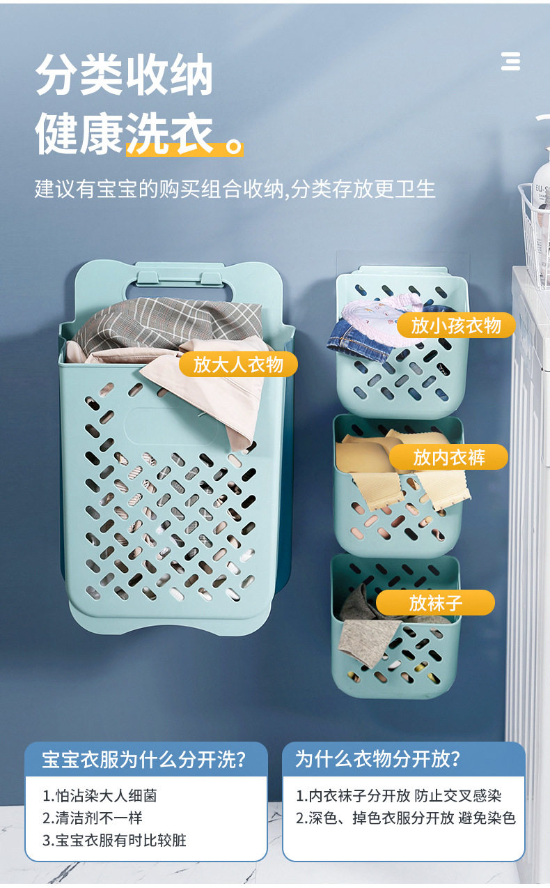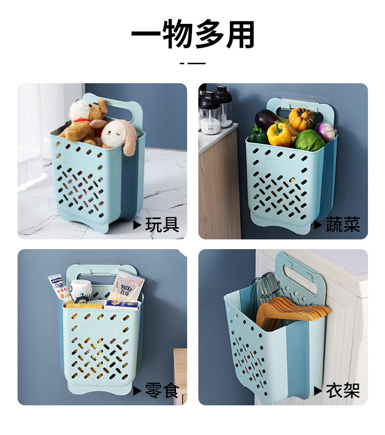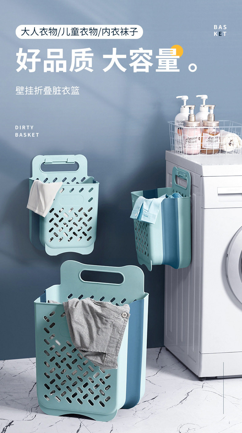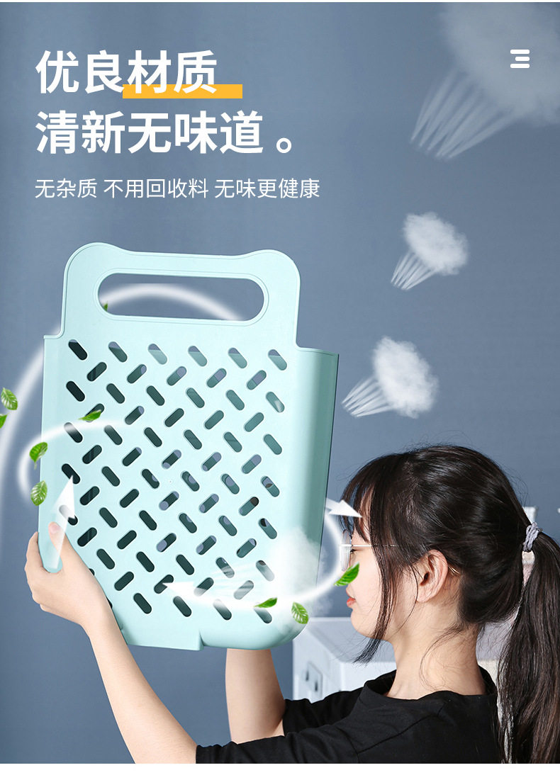 Folding Dirty Clothes Basket Household Bedroom Bathroom Storage Frame Plastic Dirty Clothes Basket Wall Hanging Storage Basket