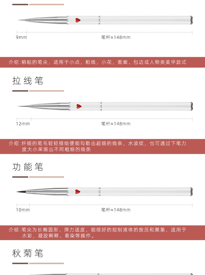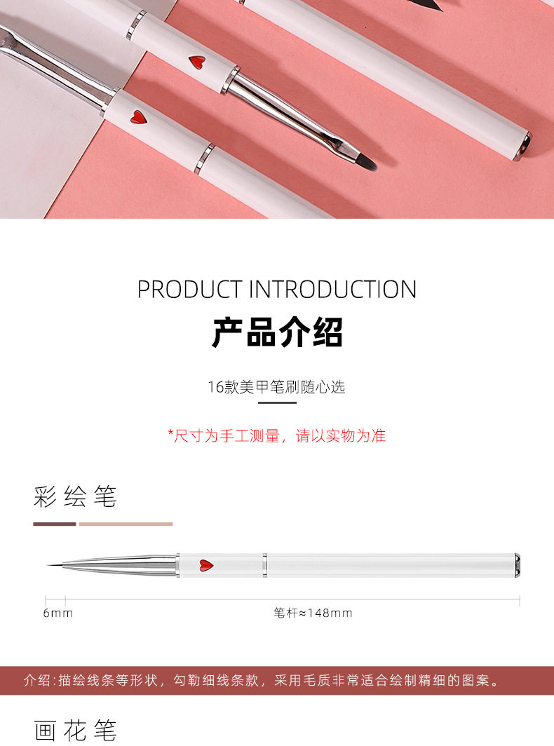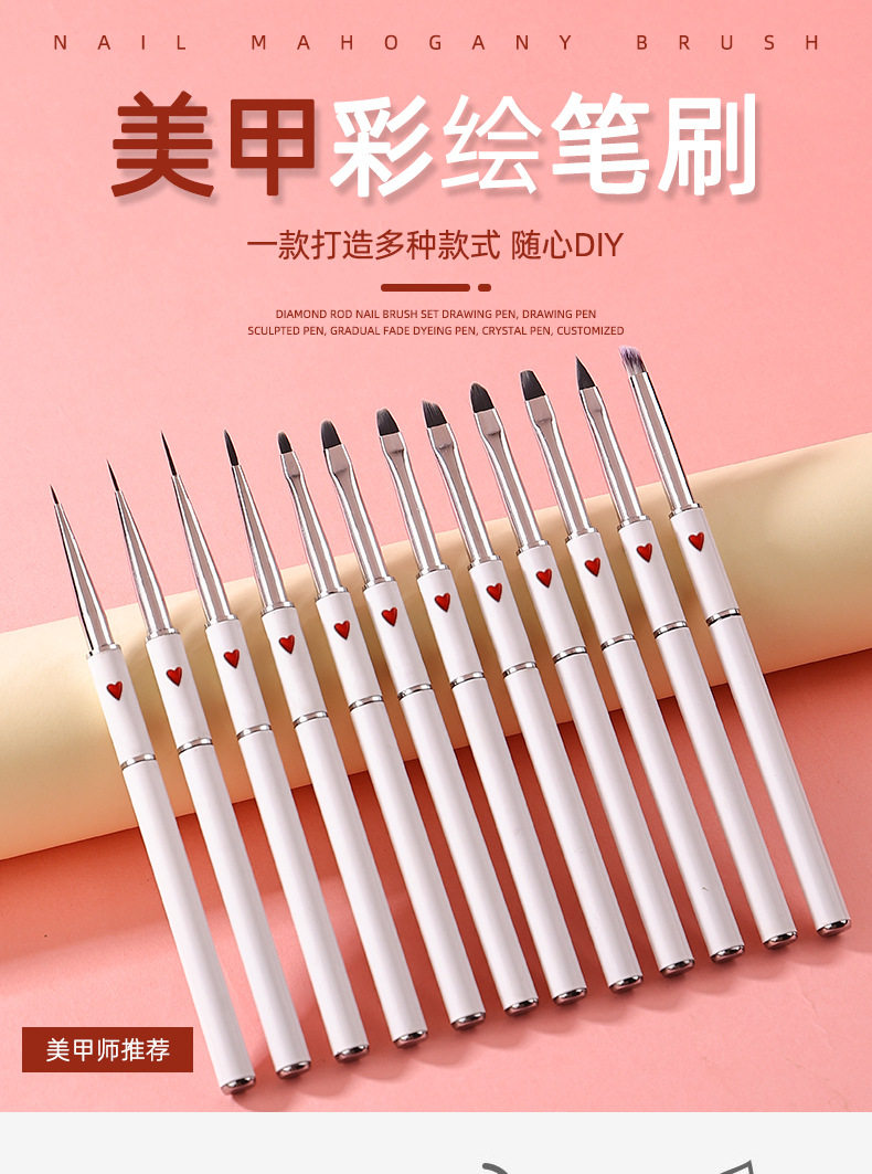 New Red Peach Heart Metal Pen Holder Manicure Brush Paint Pen Pull Line Pen Light Therapy Pen Carving Pen 12 Pack