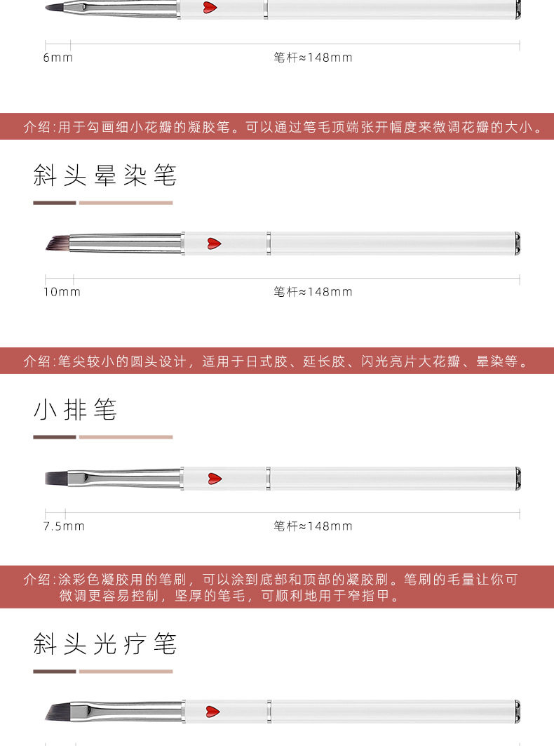 | Color | Colored Pen,Carving pen,Function pen,Paintbrush,Pull pen,Flat Head Phototherapy Pen,Qiu Ju Pen,Small row of pens,Small round pen,oblique head phototherapy pen,Oblique Dizzy Pen,round head phototherapy pen,12 suit (excluding sweep pen),Sweep pen |