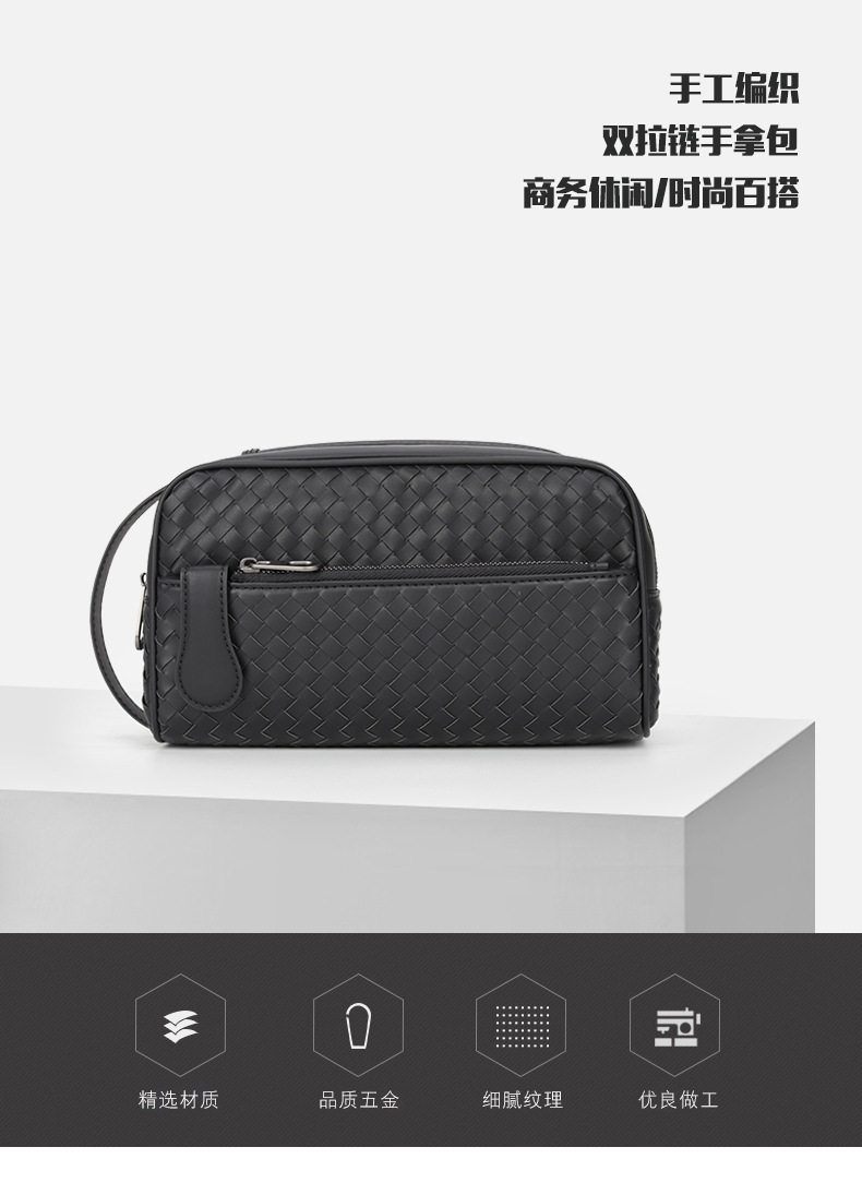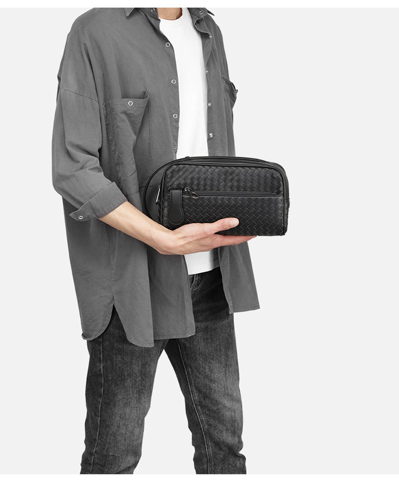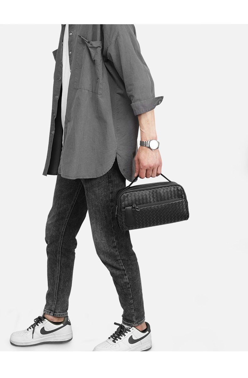 New Woven Double Zipper Clutch Trendy Men's Bag New Hand Bag Men's Large Capacity Cross-border One-Piece Hair