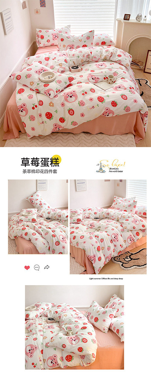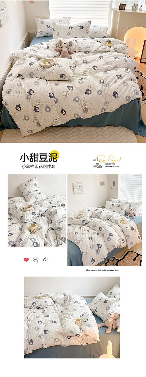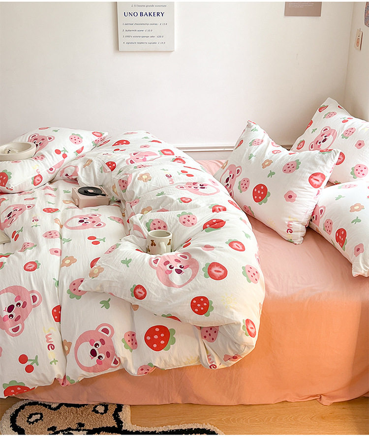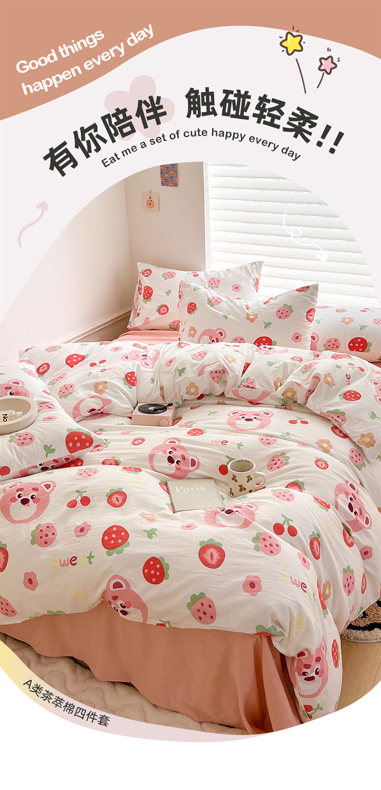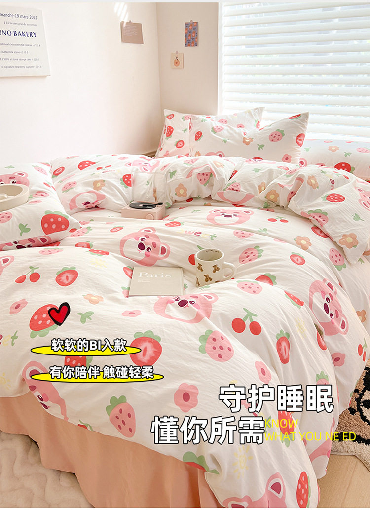 Thickened Double-Layer Yarn Four-Piece Bedding Cartoon Cute Bed Sheet Quilt Cover Bed Cover Cotton and Linen Dormitory Three-Piece Set