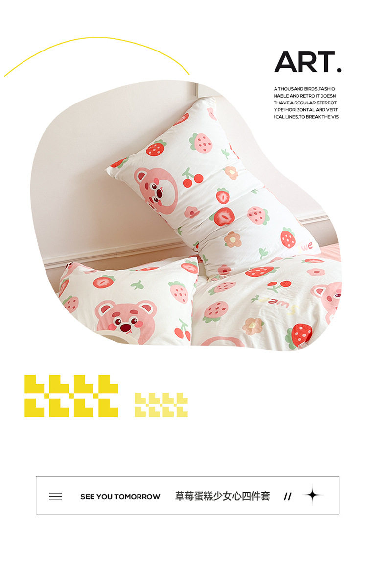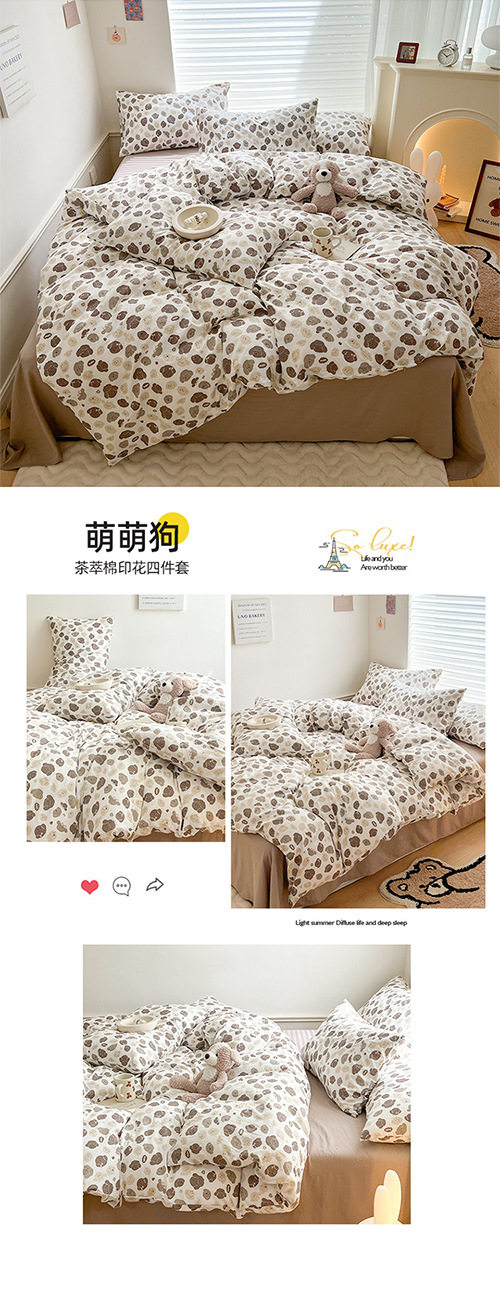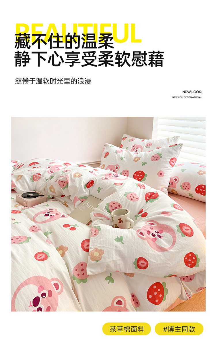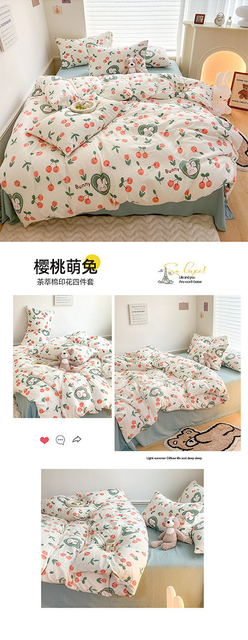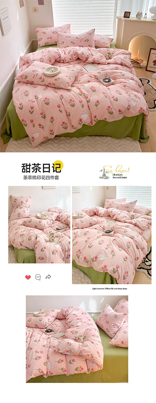 Thickened Double-Layer Yarn Four-Piece Bedding Cartoon Cute Bed Sheet Quilt Cover Bed Cover Cotton and Linen Dormitory Three-Piece Set