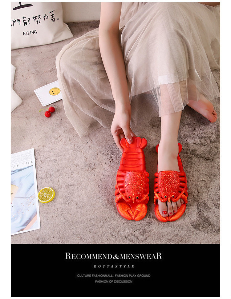 TikTok Summer Men's and Women's Fashion Sandals Creative Crayfish Slippers Funny Parent-Child Couple Beach Slippers