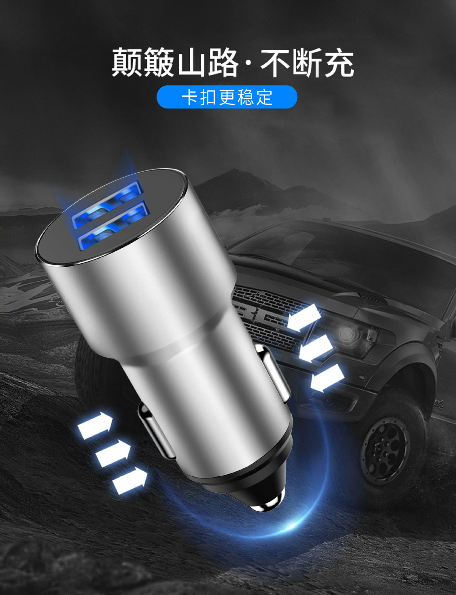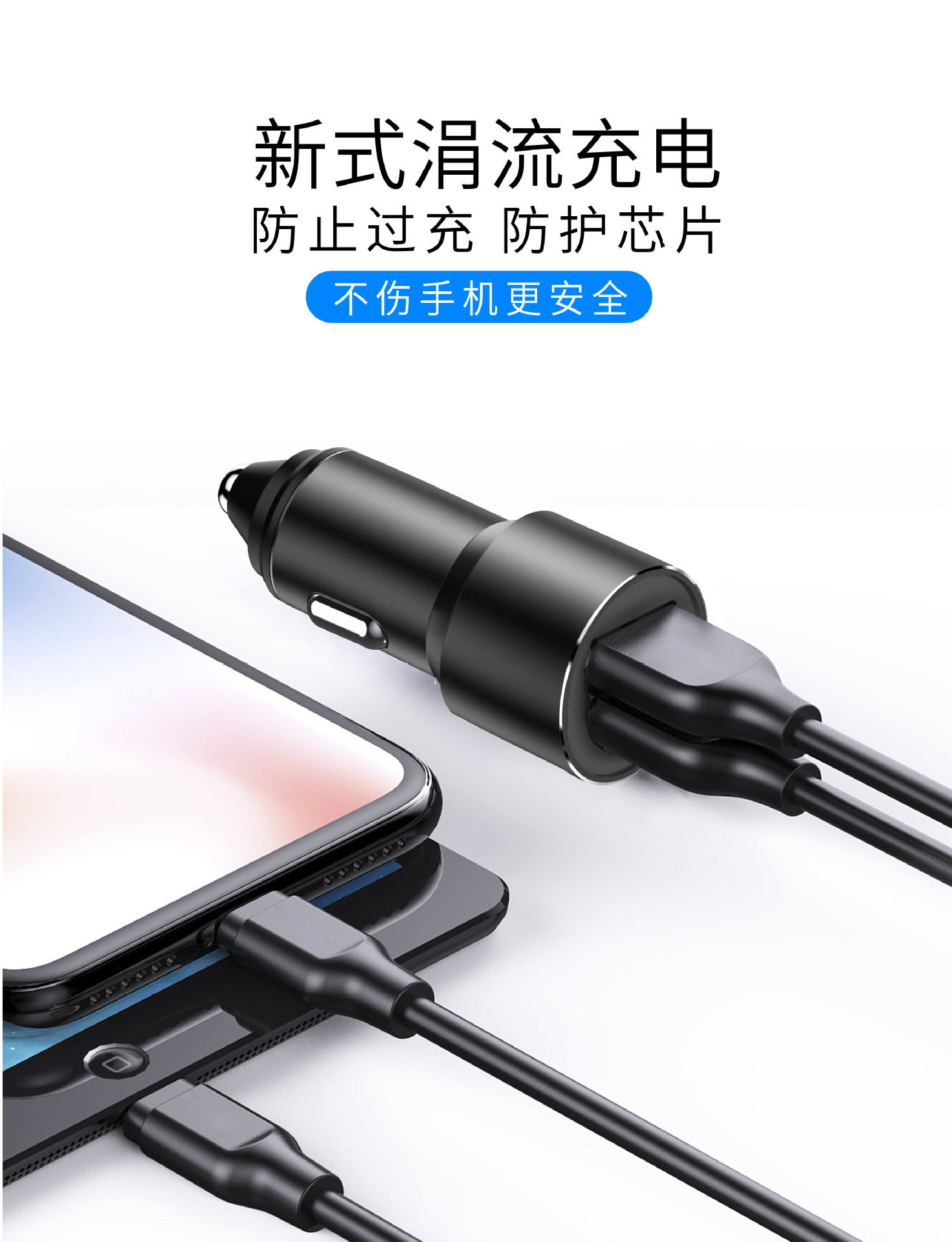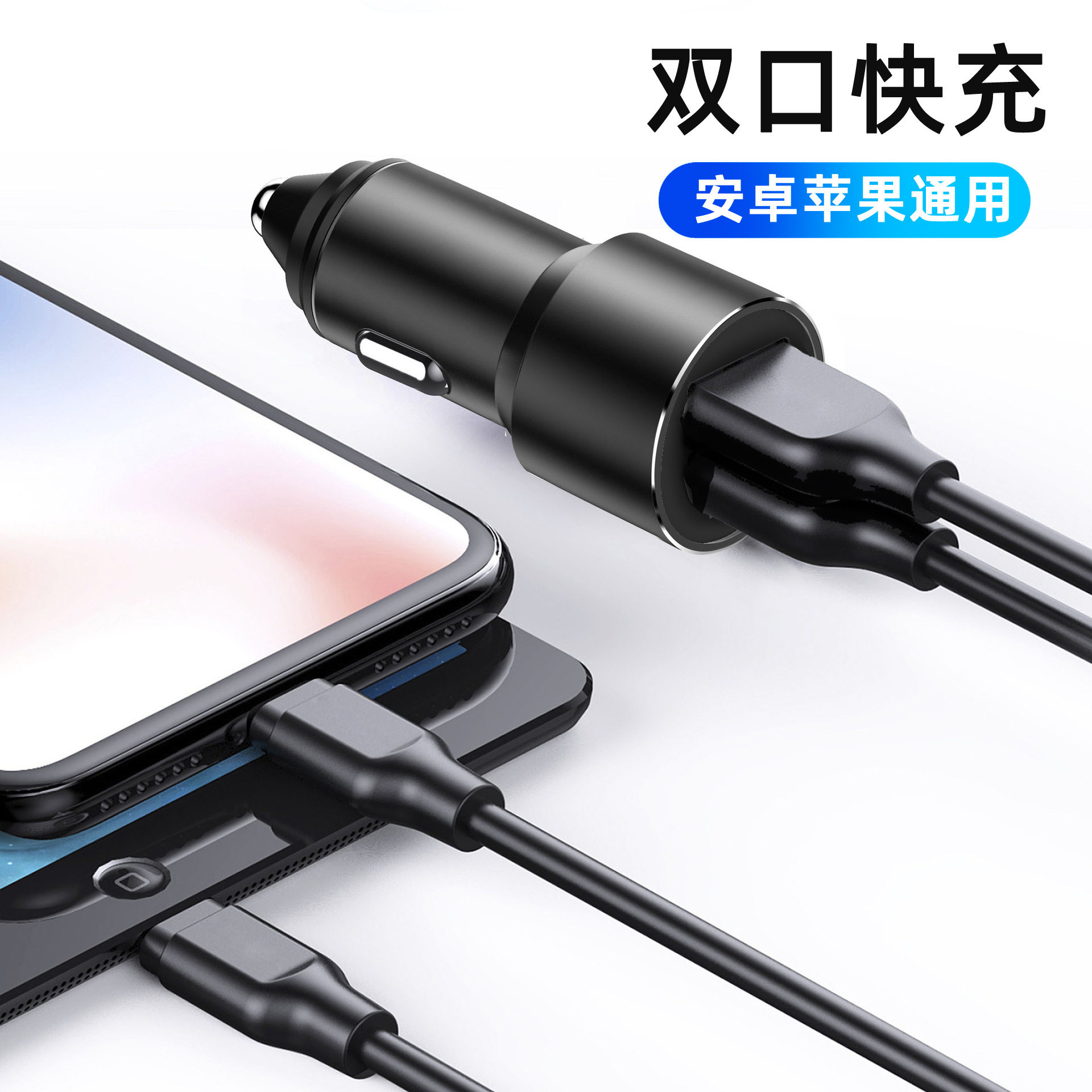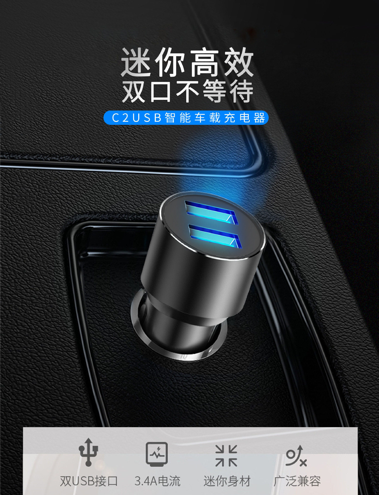 One-to-two car charger dual usb aluminum alloy car charger metal 3.4A car smart fast charger mobile phone car charger