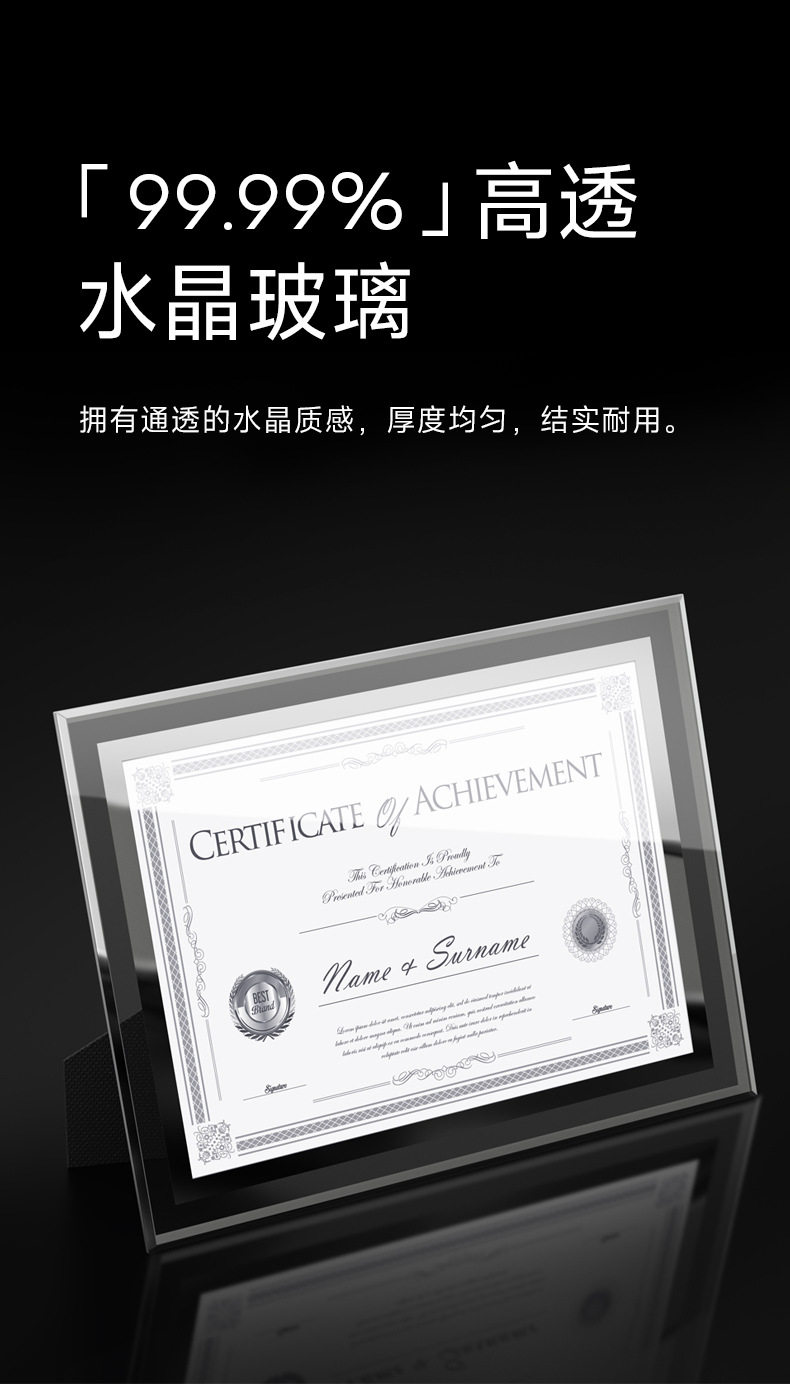 Creative Transparent Crystal Glass Photo Frame Honor Certificate Display Stand A4 Frame Picture Frame Wholesale Mirror Frame