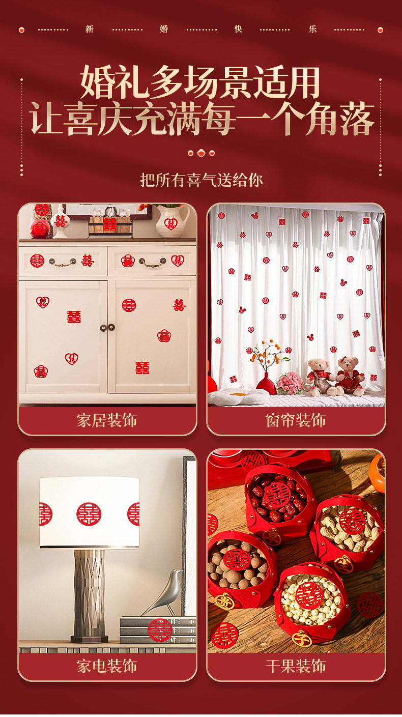 Small Happy Word Wholesale Wedding Special Hand Throwing Haimen Happy Sticker Wedding Decoration Wedding Room Layout Set Wedding Supplies