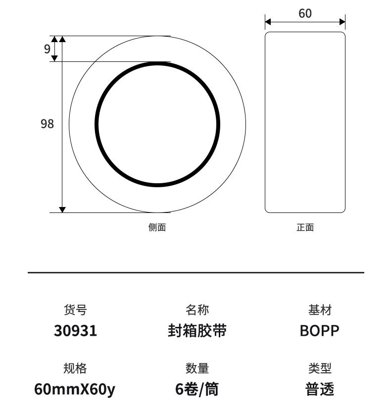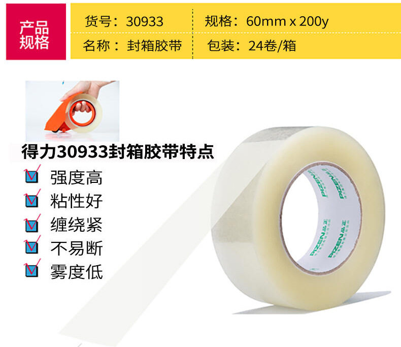 | color | 30901 sealing tape 45mm*60y single roll,30902 sealing tape 45mm*100y single roll,30904 sealing tape 45mm*200y single roll,30911 sealing tape 48mm*60y single roll,30912 sealing tape 48mm*100y single roll,30913 sealing tape 48mm*150y single roll,30914 sealing tape 48mm*200y single roll,30922 sealing tape 55mm*100y single roll,30923 sealing tape 55mm*200y single roll,30931 sealing tape 60mm*60y single roll,30932 sealing tape 60mm*100y single roll,30933 sealing tape 60mm*200y single roll |