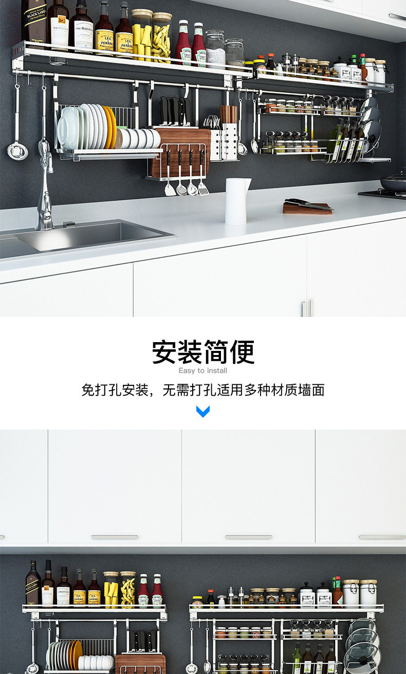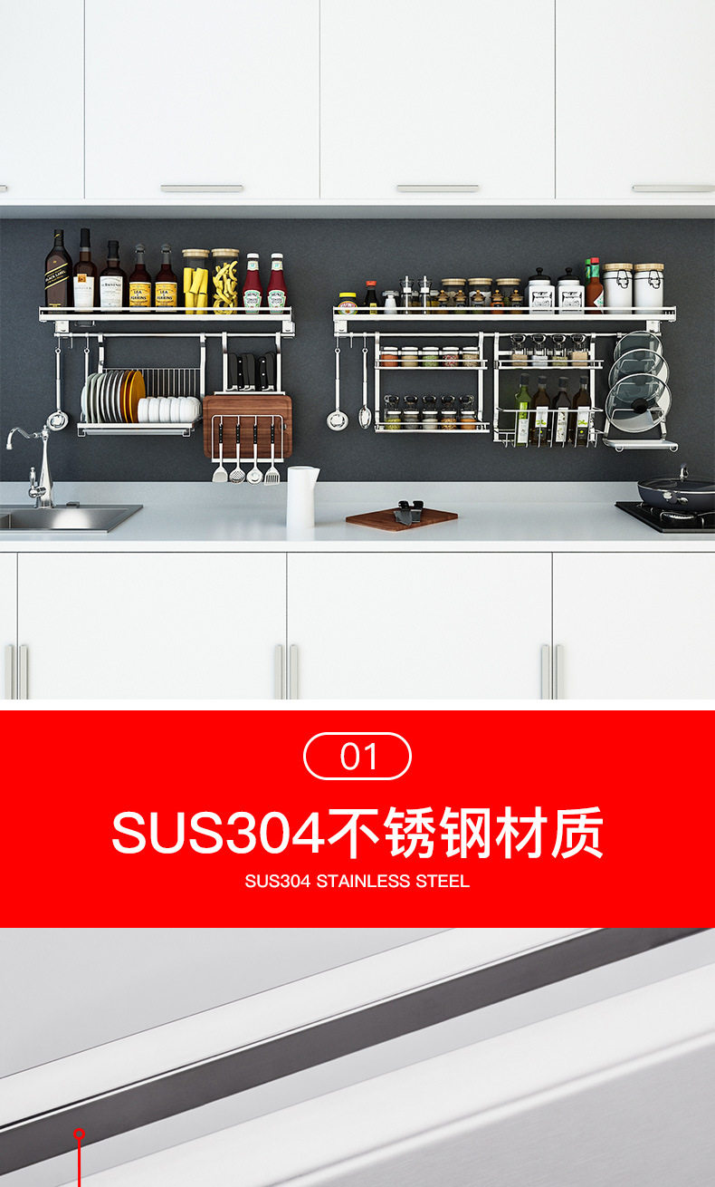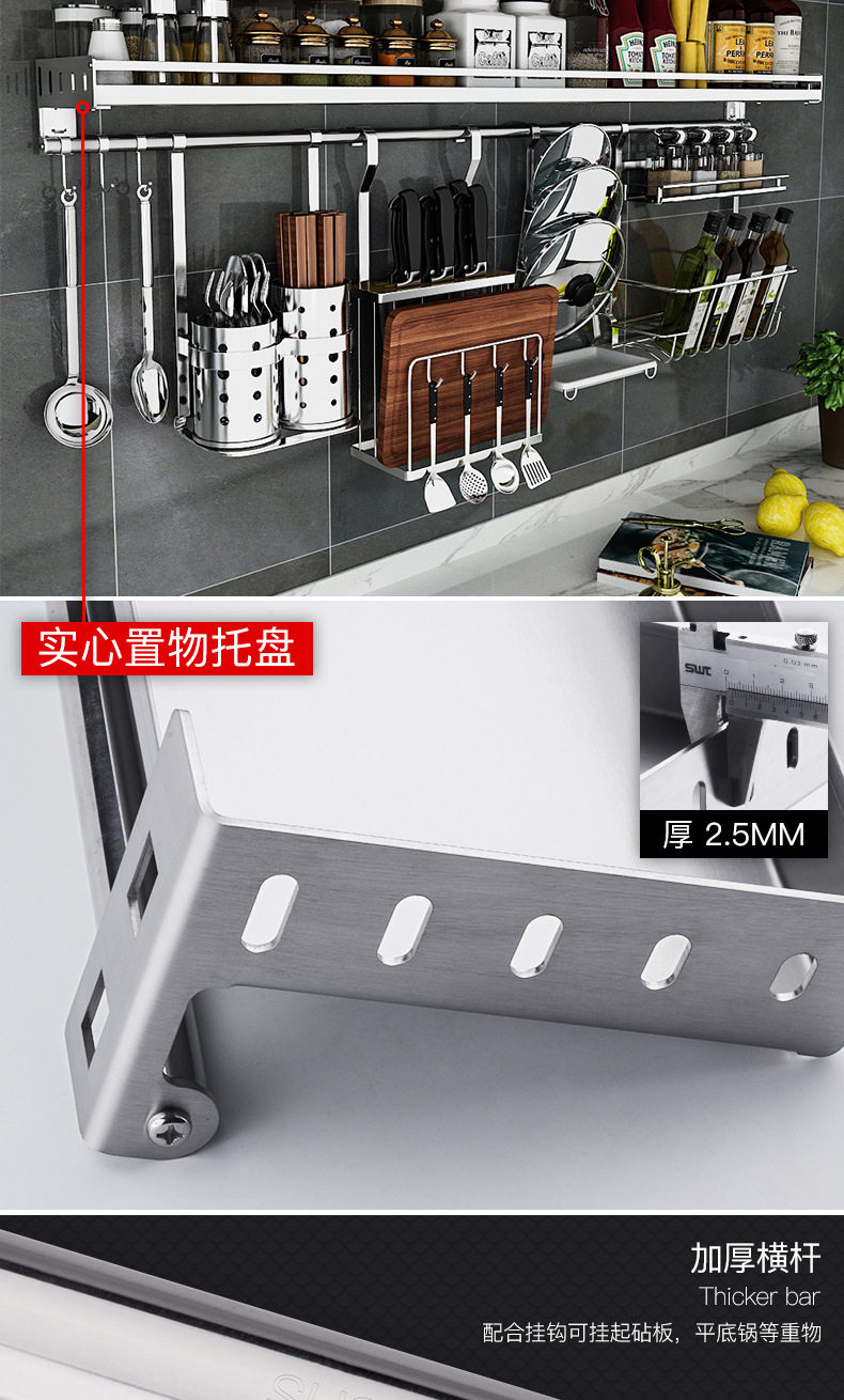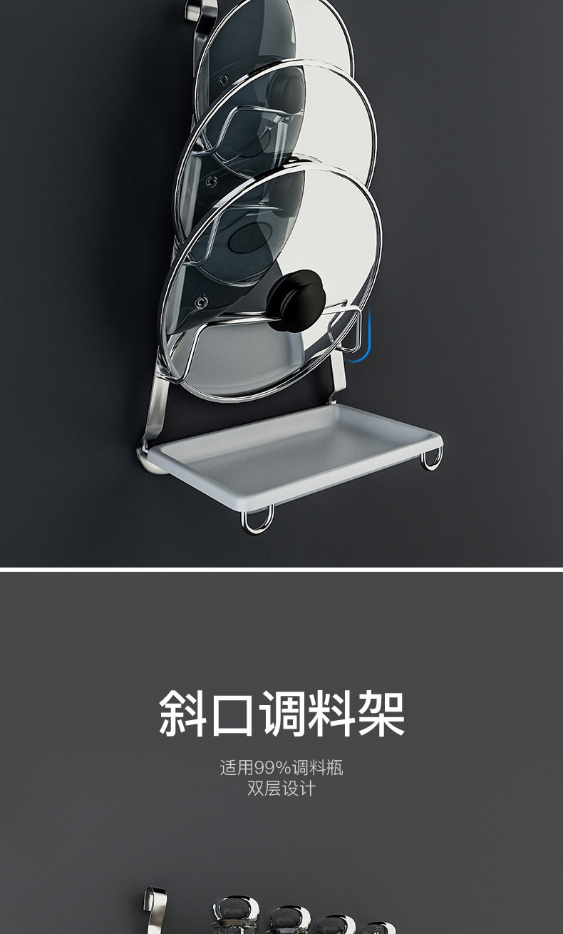 304 stainless steel kitchen rack Wall seasoning dish rack wall-mounted chopsticks pot lid seasoning rack hanging rod