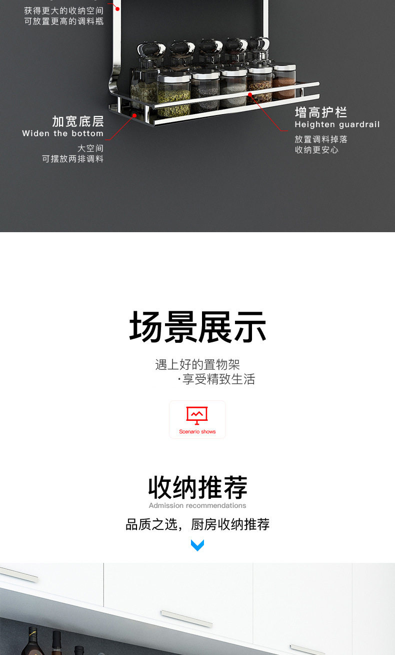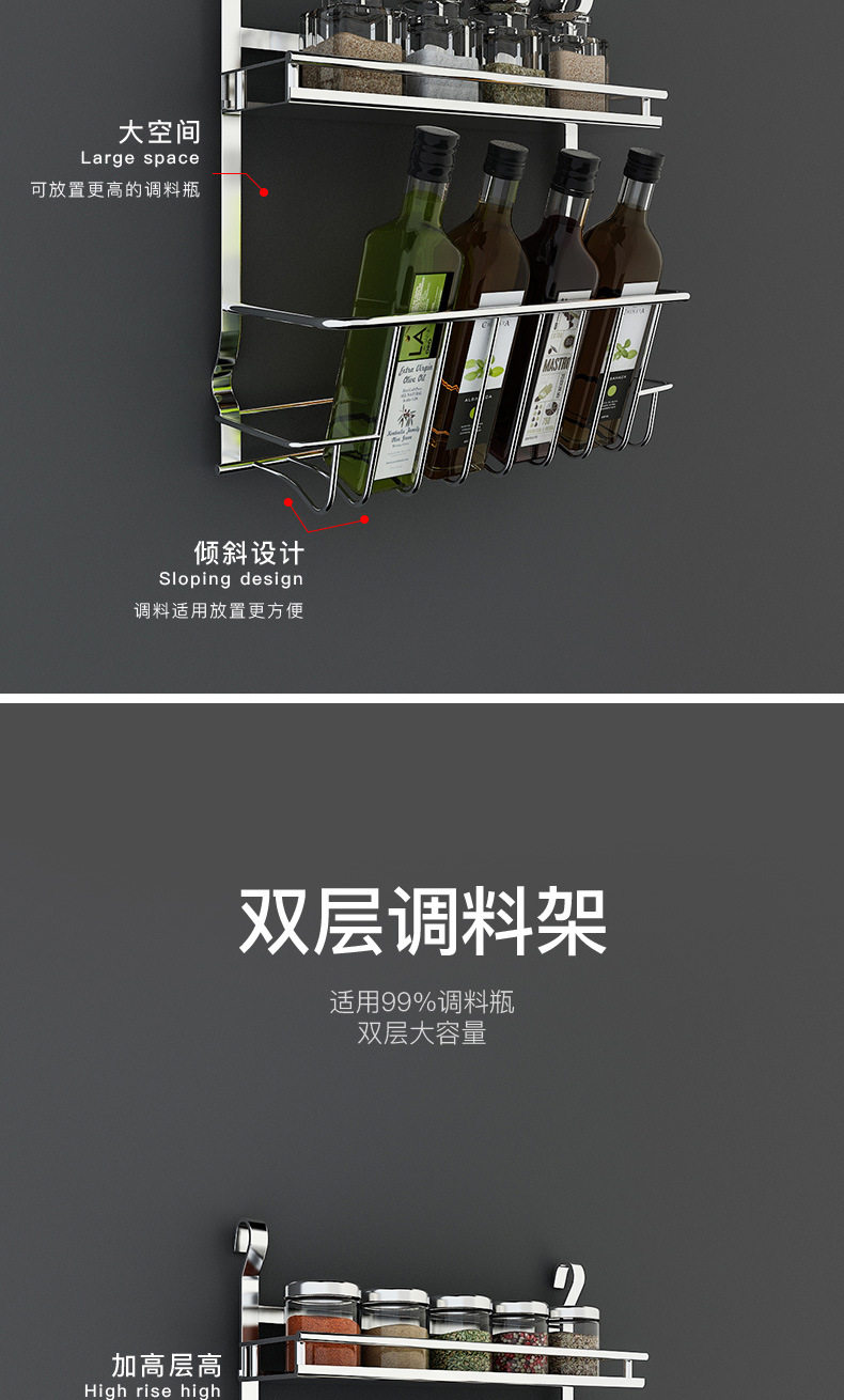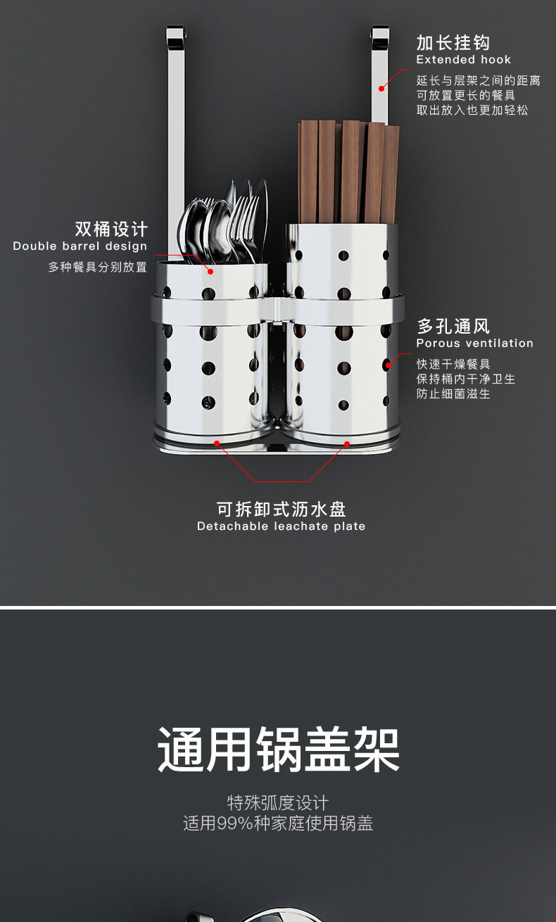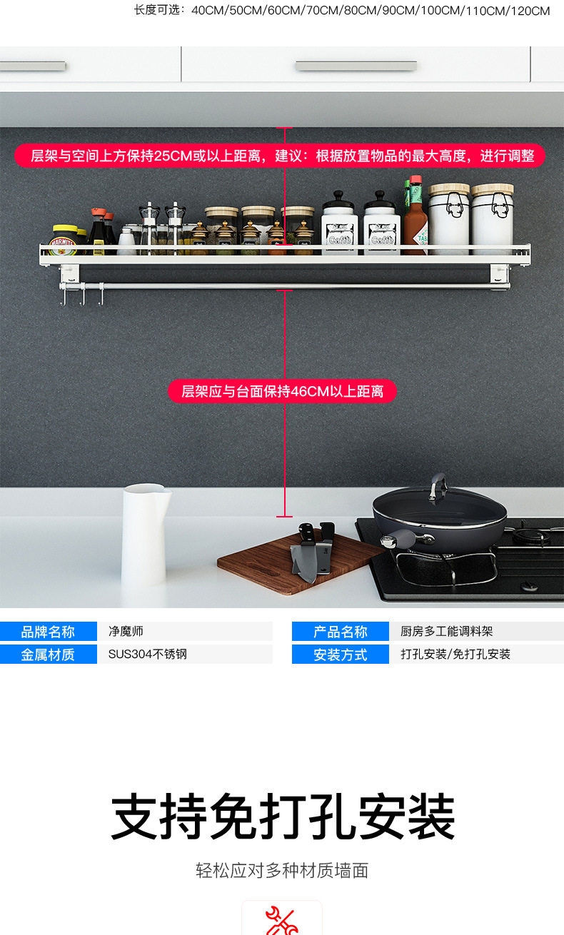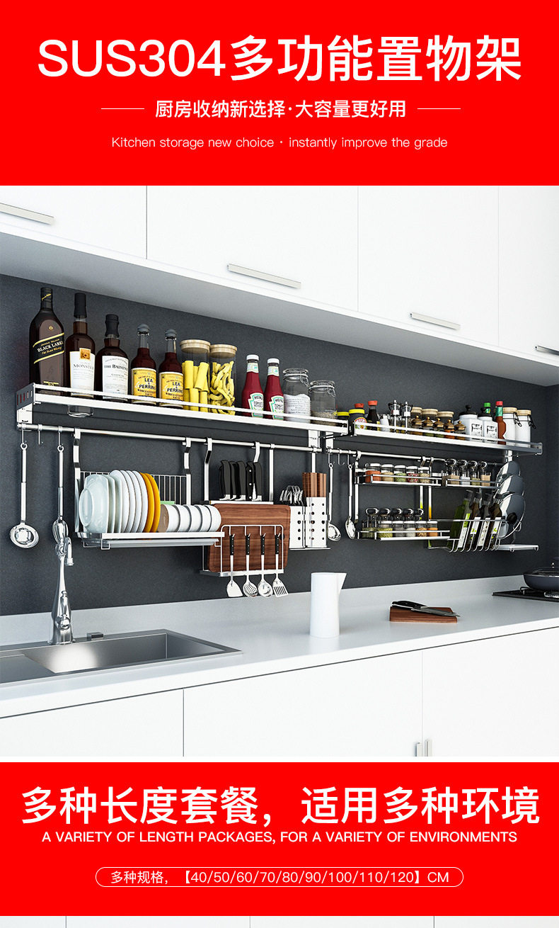 304 stainless steel kitchen rack Wall seasoning dish rack wall-mounted chopsticks pot lid seasoning rack hanging rod