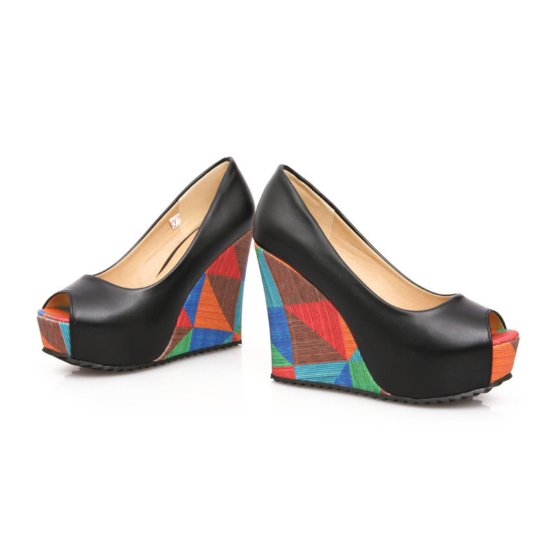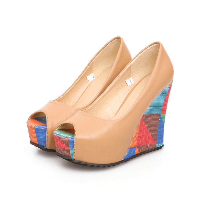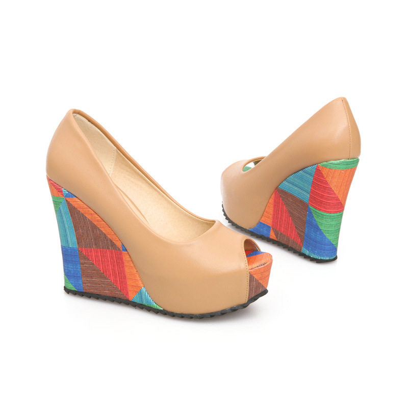 M-4 Foreign Trade Women's Shoes Peep-Toe Wedge Sandals with Waterproof Platform, Available in Various Sizes, Color-Blocked Pattern, Specially Designed for Cross-Border E-Commerce, Comfortable