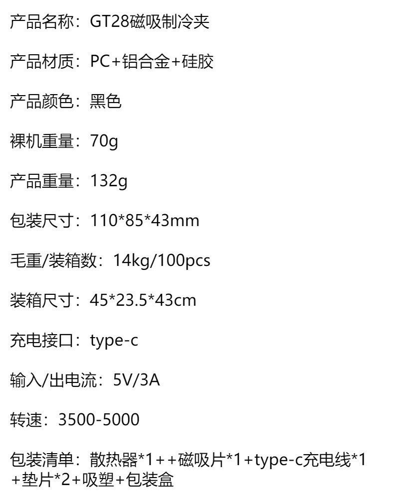 New Gt28 Magnetic Semiconductor Mobile Phone Radiator Second-Speed Adjustable Chicken-Eating Artifact Live Broadcast Radiator