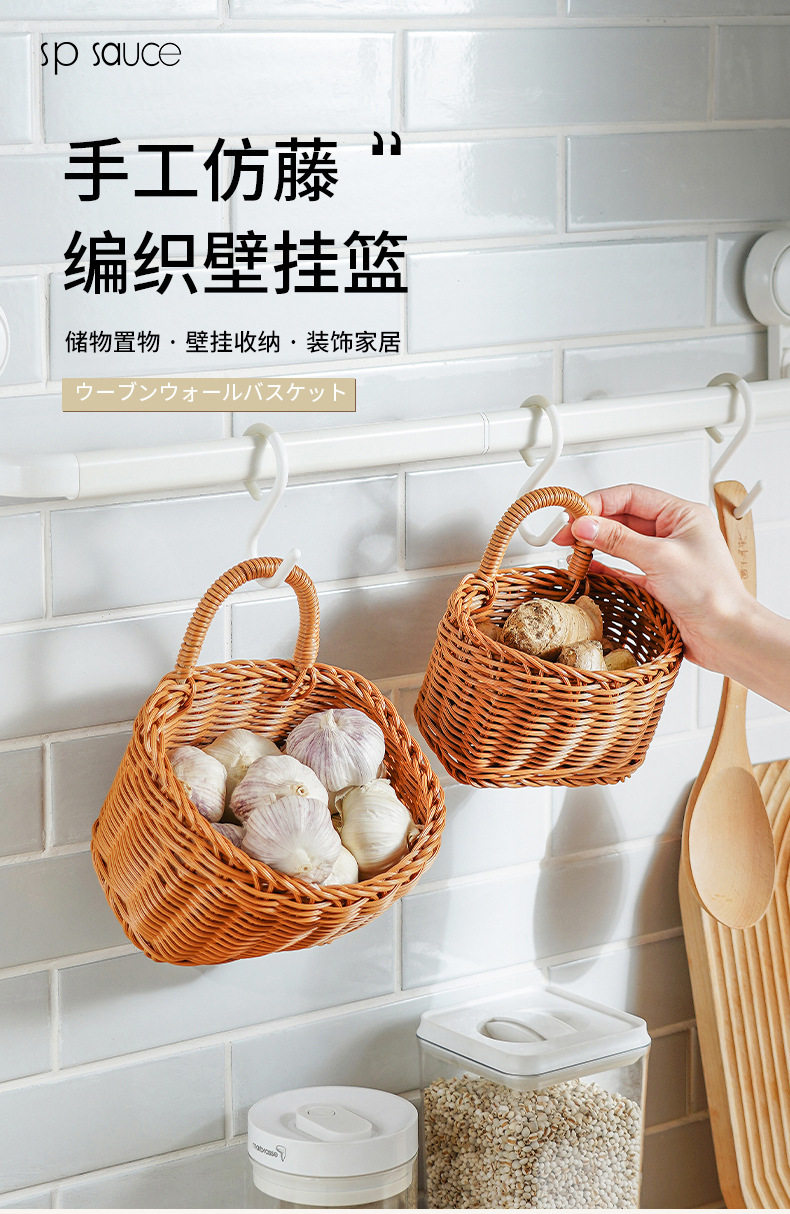 Ginger and Garlic Storage Basket Kitchen Small Hanging Basket Wall Storage Basket for Scallion Ginger and Garlic Hand-woven Basket