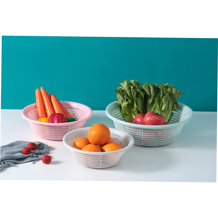 Household Kitchen Plastic Vegetable Basket for Storing Vegetables and Fruits, Round Draining Basket, Vegetable Washing Basin, Eco-Friendly Draining Tool