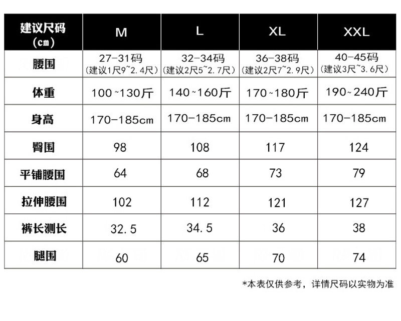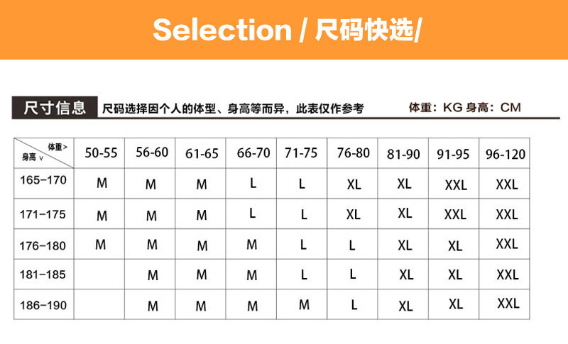 | Size | M(recommended 50-65kg ),L (recommended 70-75kg ),Xl (recommended 80-95kg ),Xxl (recommended 100-120kg ) |