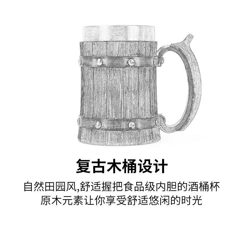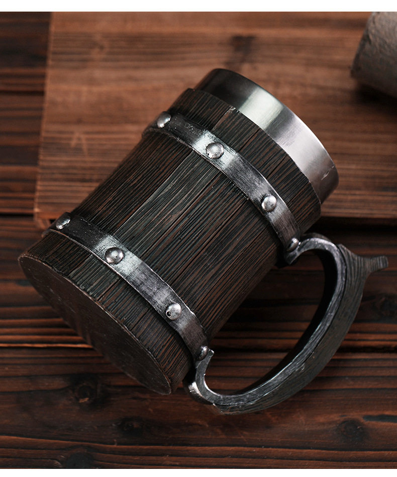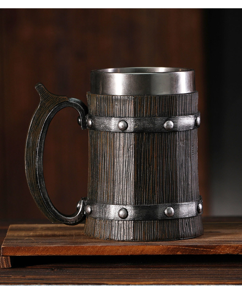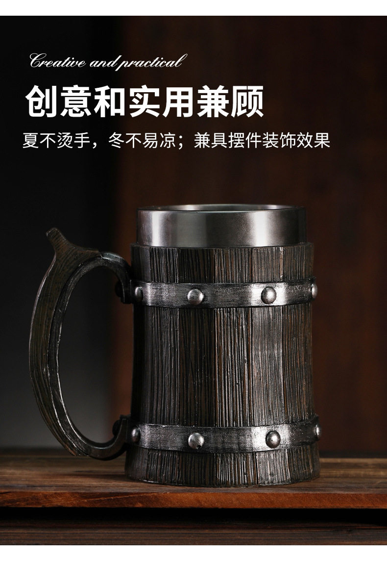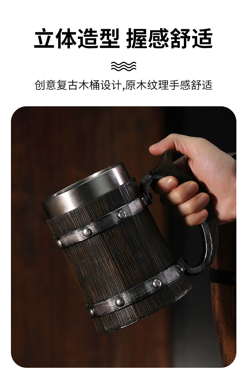 Foreign Trade Cross-Border Wooden Barrel Beer Mug Creative Large-Capacity Bar Mug Water Cup Personalized Imitation Wood Stainless Steel Cup