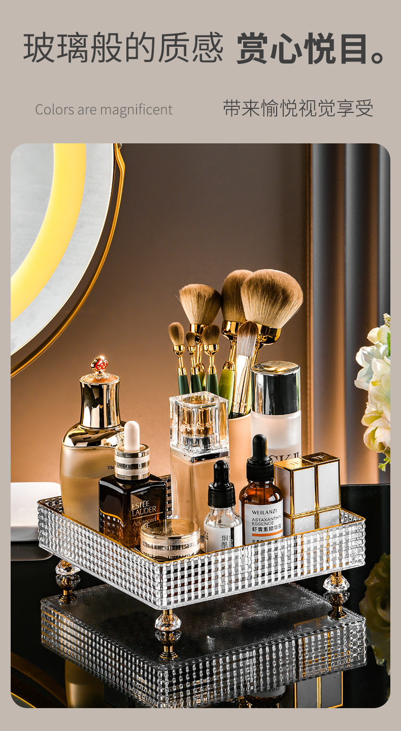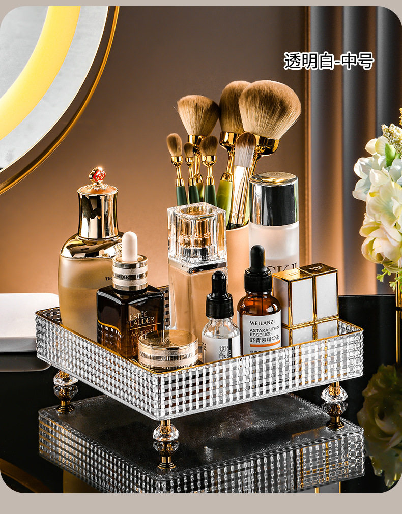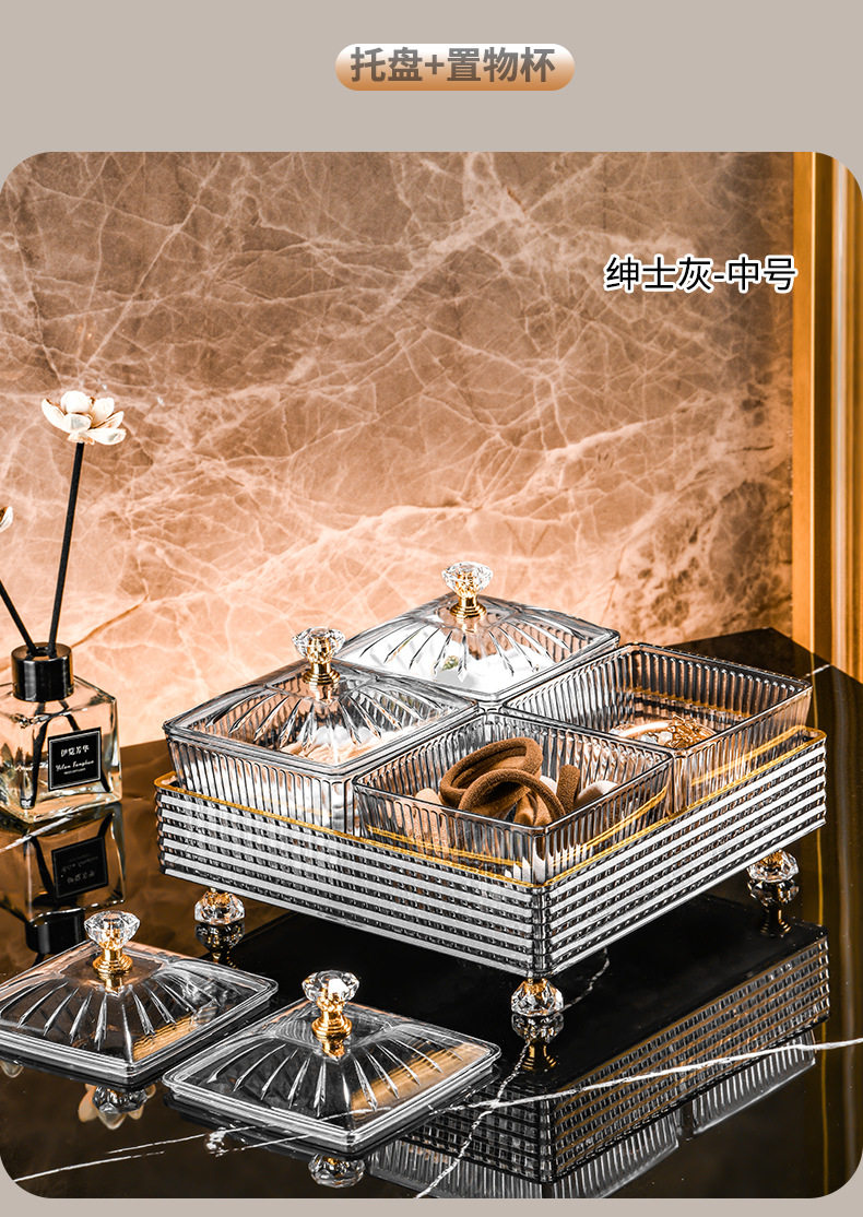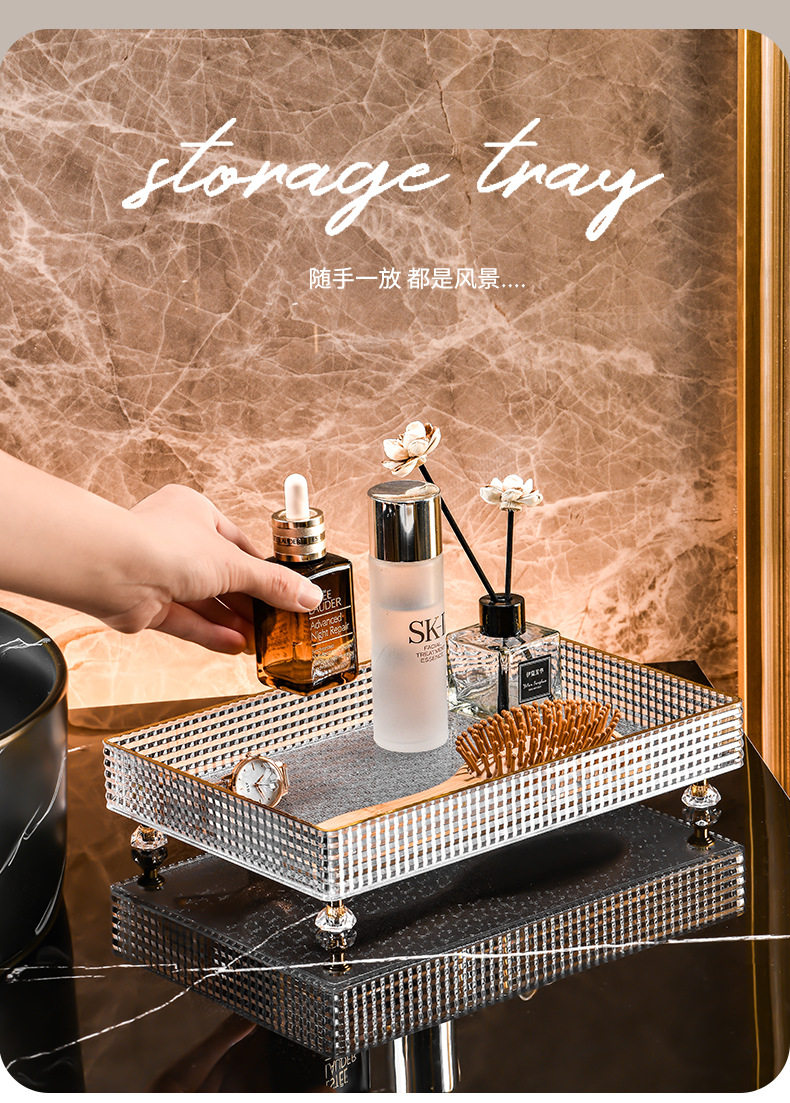 Light Luxury Crystal Desktop Cosmetics Storage Box Sundries Snack Storage Basket Kitchen Finishing Box Bedroom Storage Box