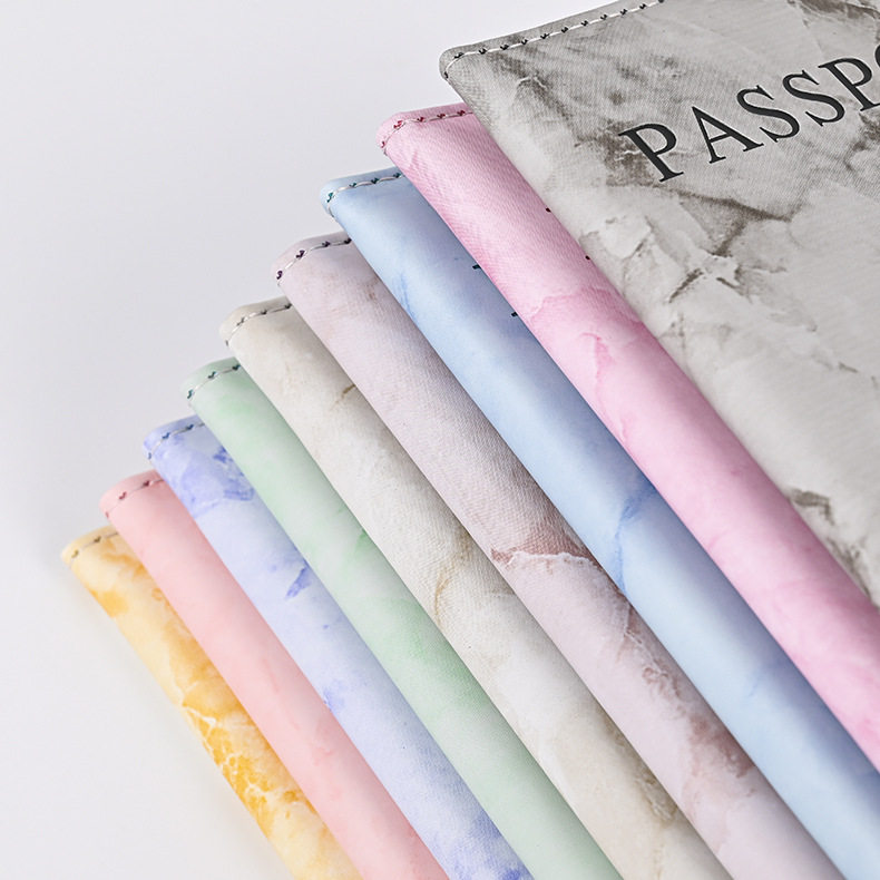 New Hot Selling Macaron Color Marble Pattern Passbook Bag Ultra-thin ID Clip Passbook for Men and Women Traveling Abroad