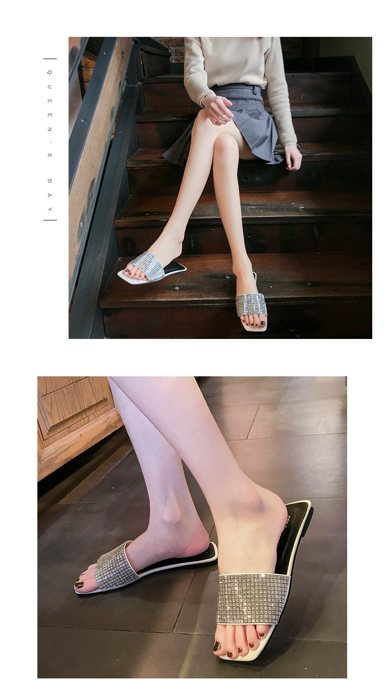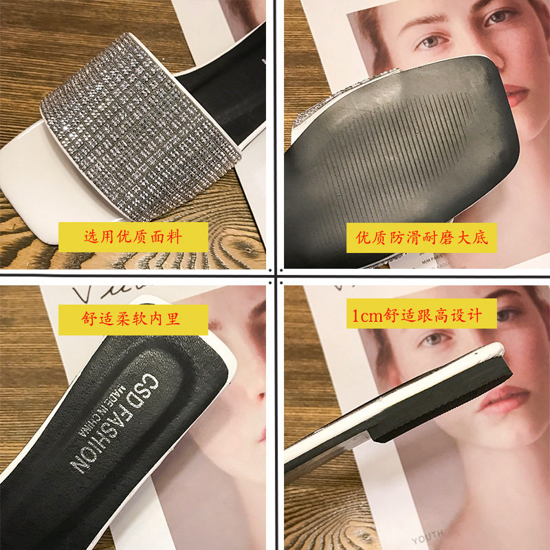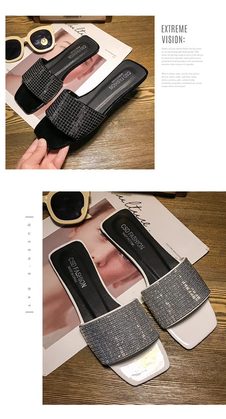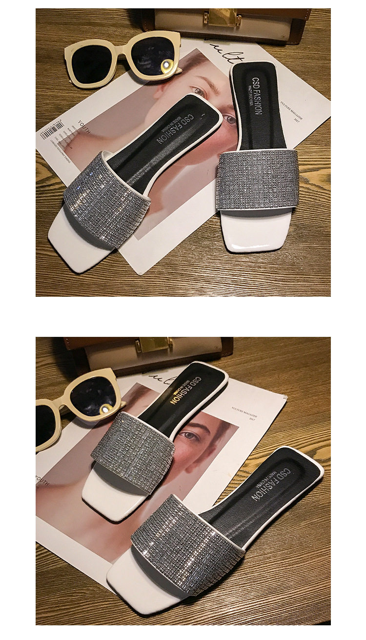 Crystal Bright Diamond One-Word Sequined Flats Slippers 2023 Spring and Summer Casual Home and Outdoor Wear Fashionable Wear-Resistant Women's Shoes Summer