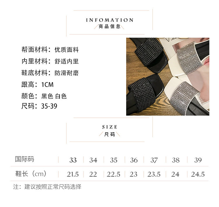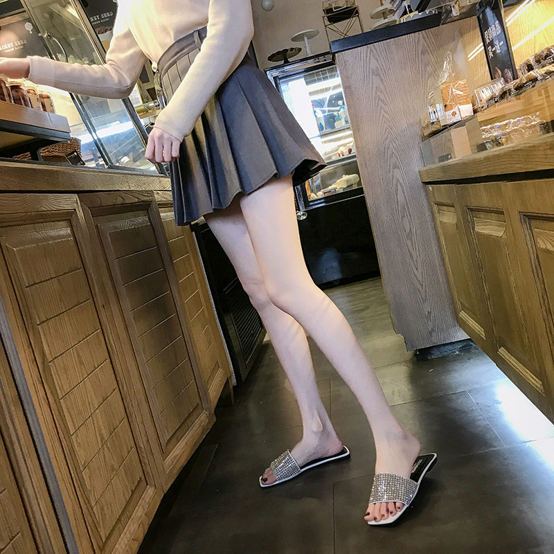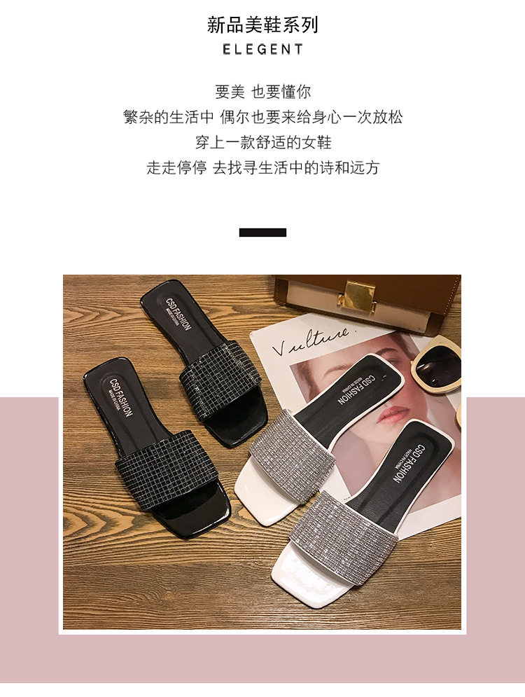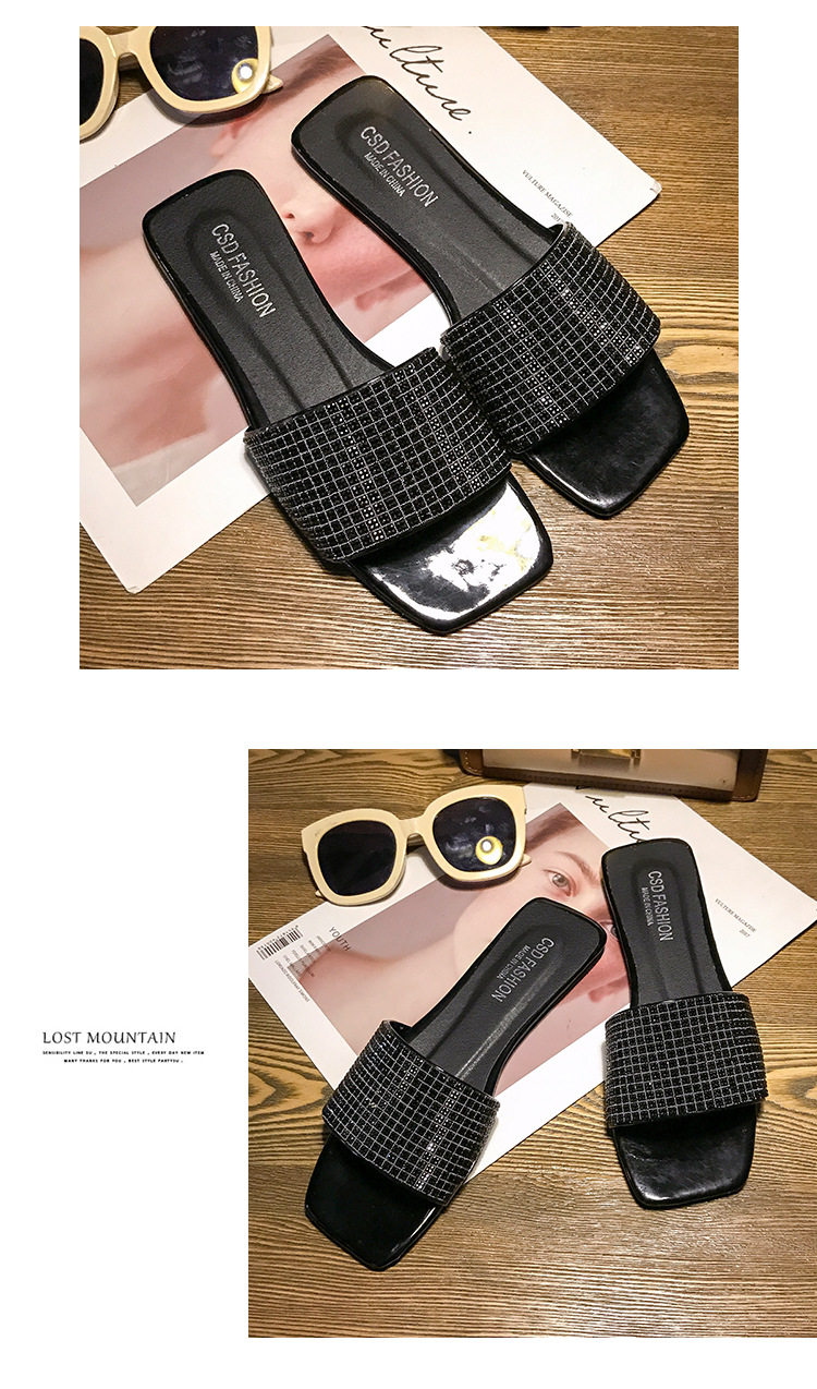 Crystal Bright Diamond One-Word Sequined Flats Slippers 2023 Spring and Summer Casual Home and Outdoor Wear Fashionable Wear-Resistant Women's Shoes Summer